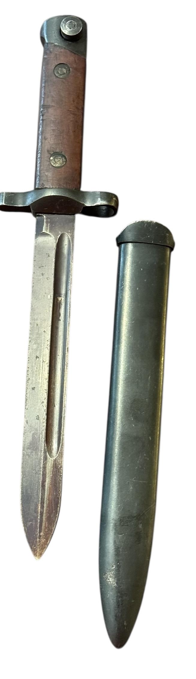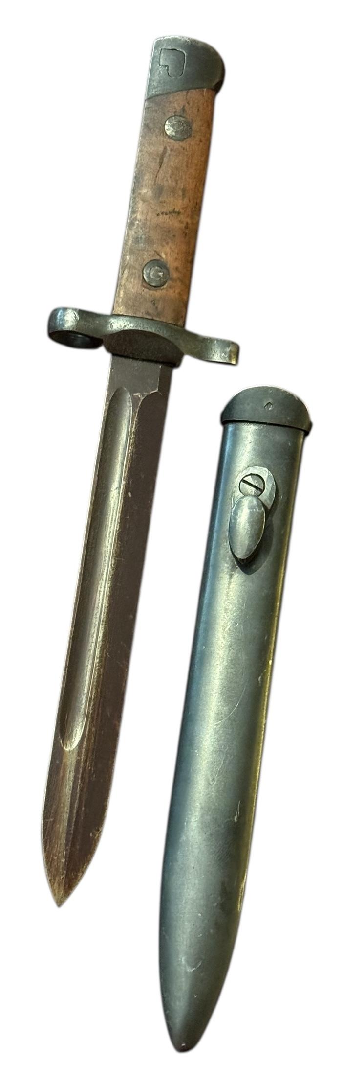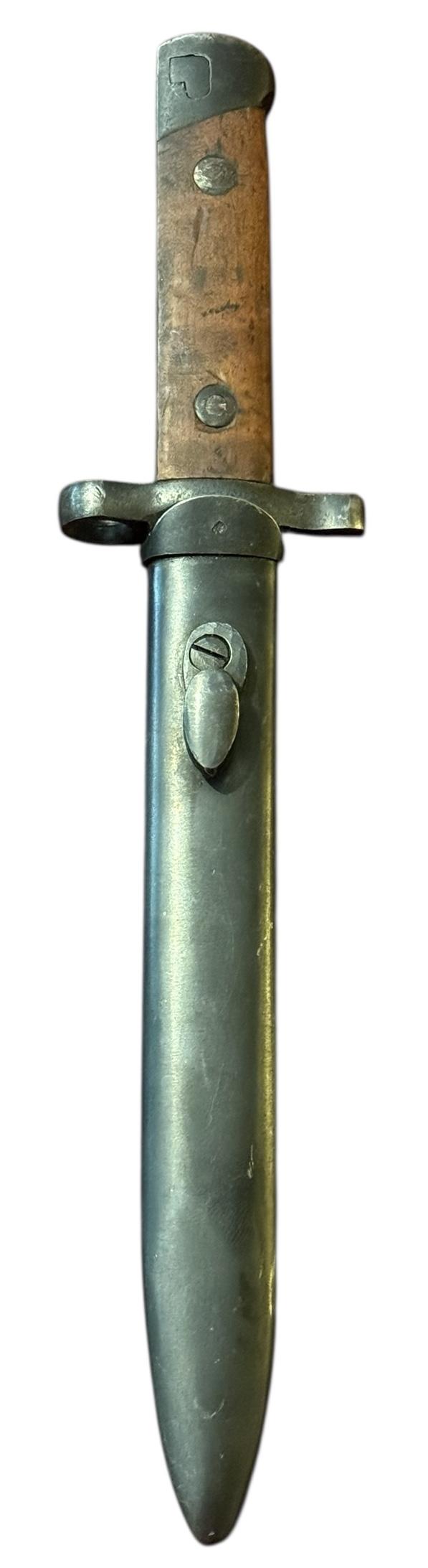 With its original metal scabbard in its original black finish. Overall a very nice used Italian “Carcano” bayonet in very good condition.