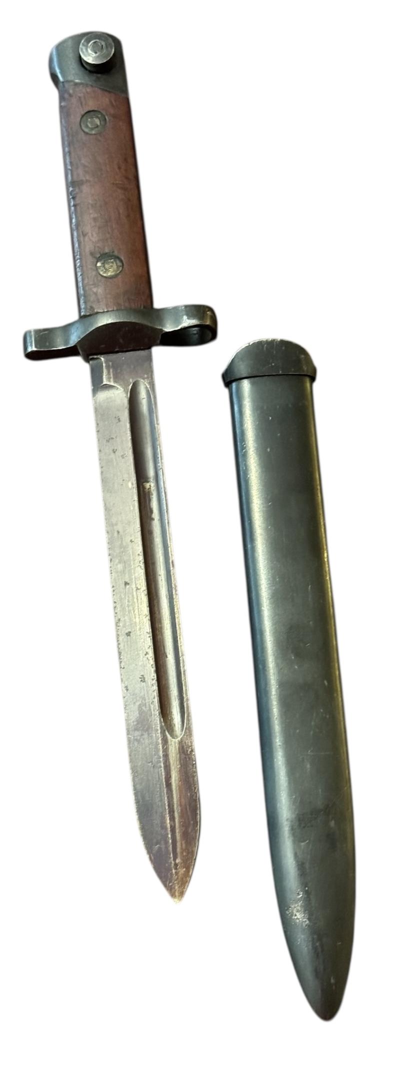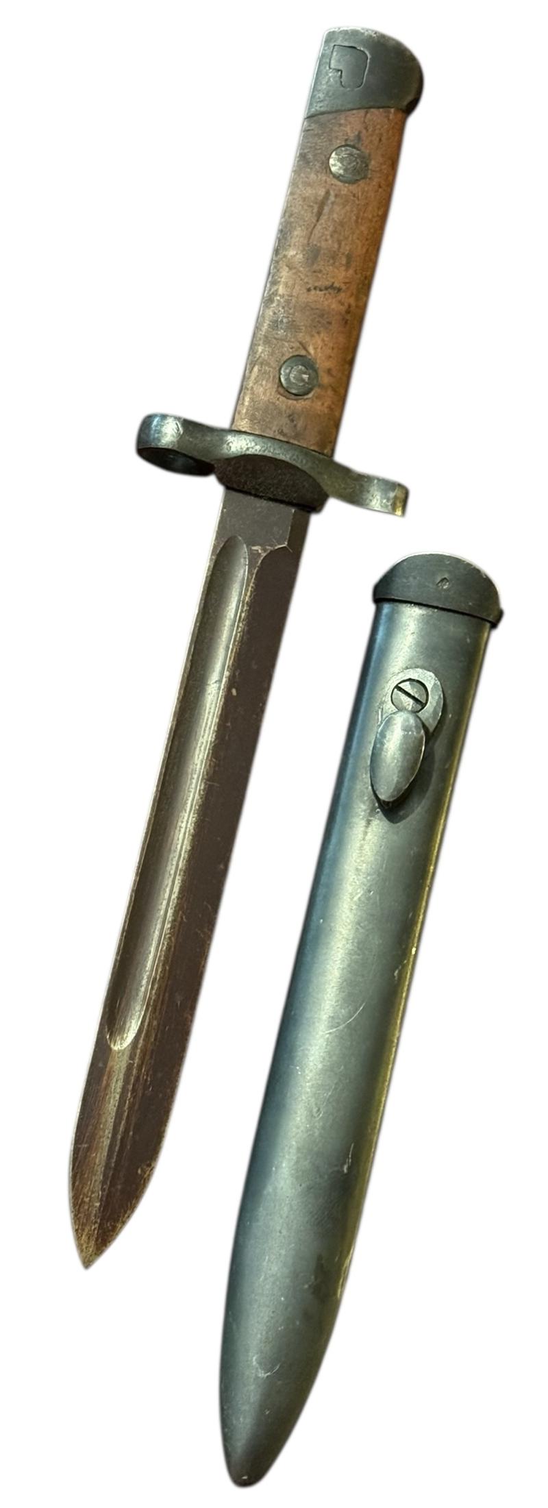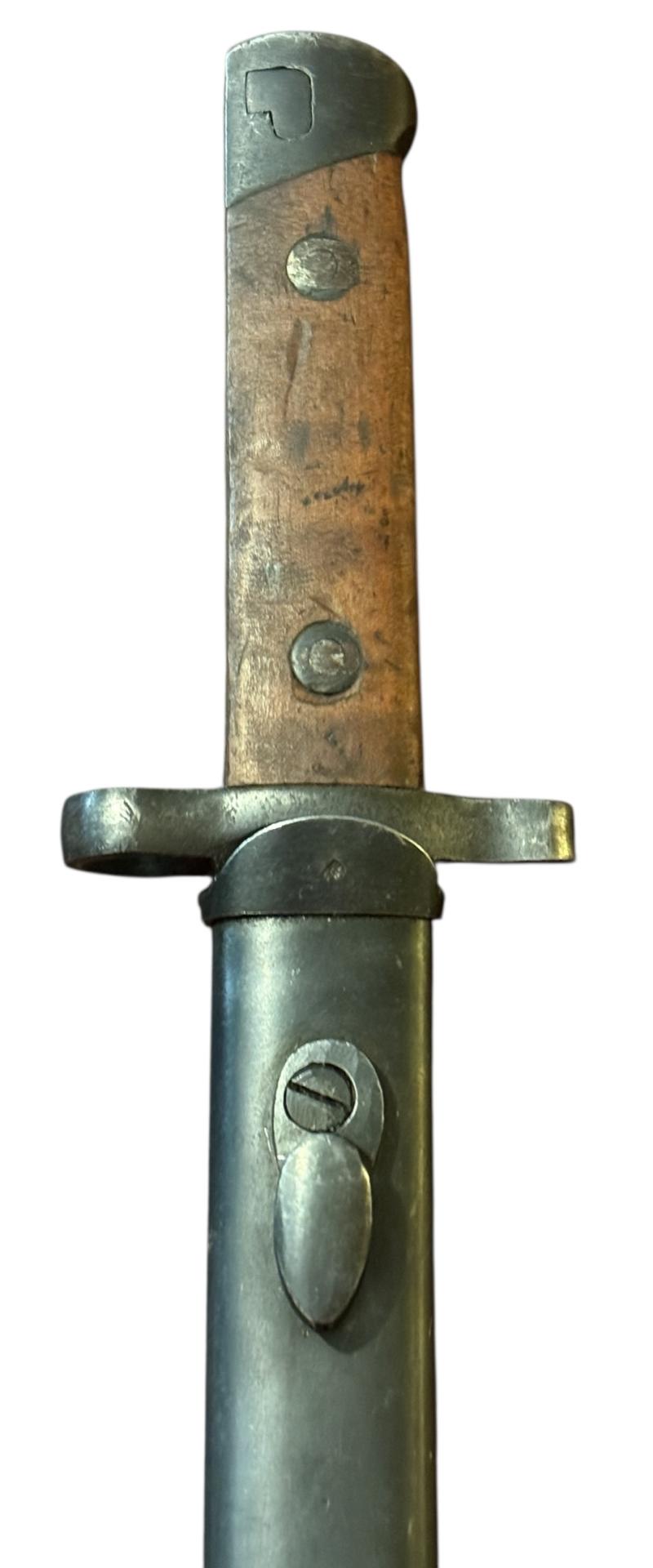 With its original metal scabbard in its original black finish. Overall a very nice used Italian “Carcano” bayonet in very good condition.