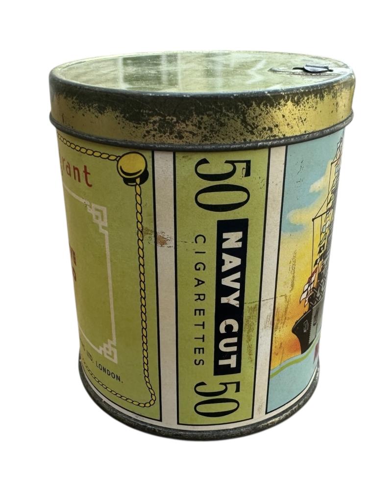 Nice (empty) metal cigarette can with original paper label “British WW2 “Primium Navy Cut Cigarette Can”