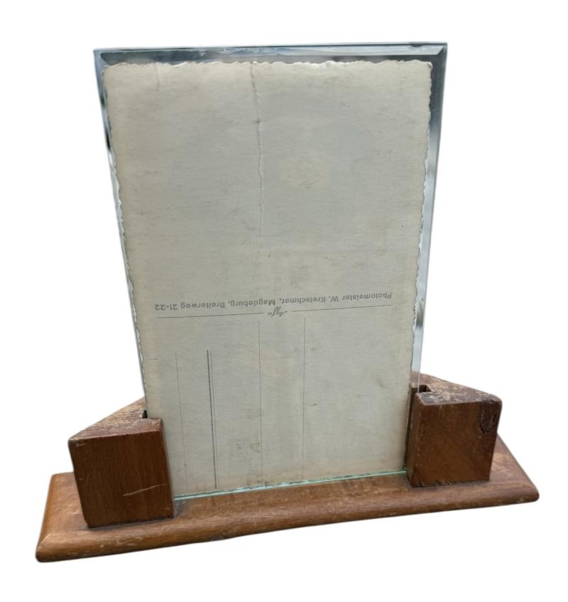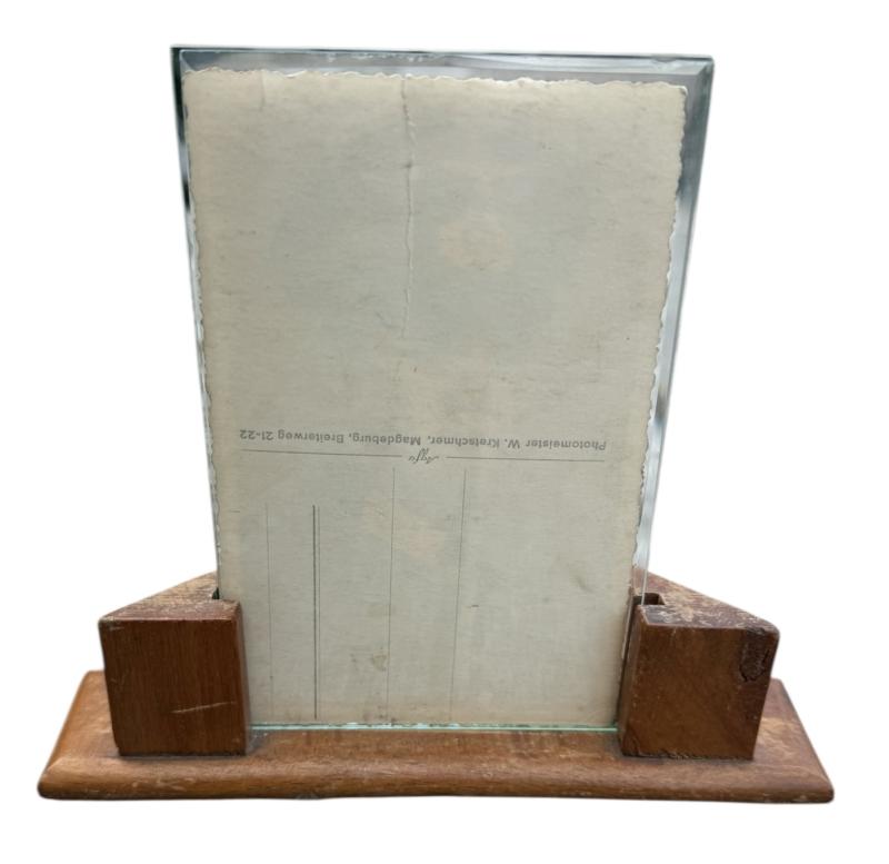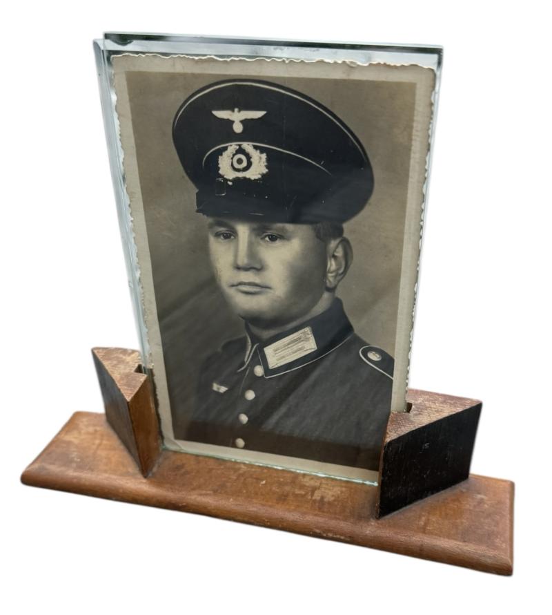 Framed Wehrmacht Portrait Photo Very nice postcard size and framed Wehrmacht portrait photograph. Wehrmacht soldier wearing a Elisted/NCO visor cap. Overall in good condition. Nice for display!