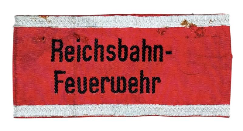 Used but nice and less common to find “Reichsbahn-Feuerwehr” officers armband, nice machine woven armband with minor wear but overall in good condition. Great in any armband collection!