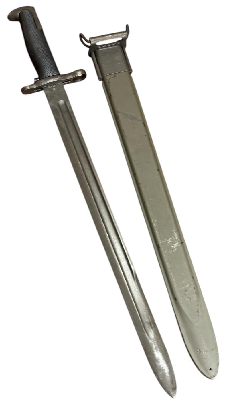 Very nice untouched US WW2 long model 1903 rifle/M1 Garand bayonet with its original scabbard