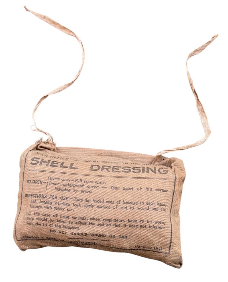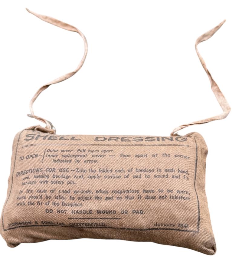 British WW2 First Aid Bandage “Shell Dressing” made by “Robinson & Sons Ltd., Chesterfield” Dated “1941” with content and never being opened Nice for a medical display or for use on a British mannequin!