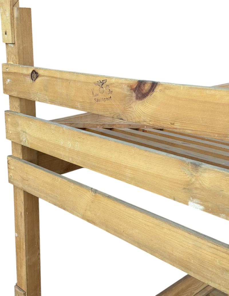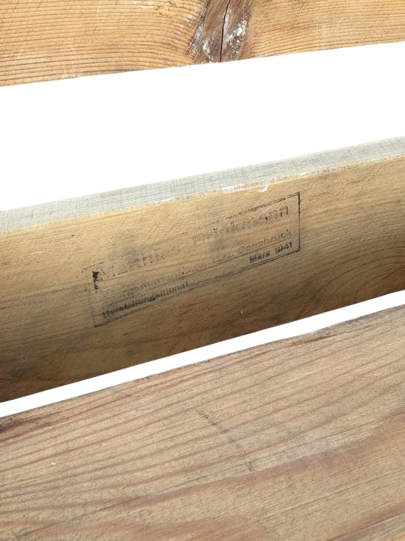 Fantastic for a diorama! Nice simpel made wooden “Luftschutz” bunk bed. Maker marked and dated “1941” and eagle marked with “L.S.” which means “Luftschutz” in used but in very good condition!