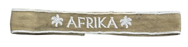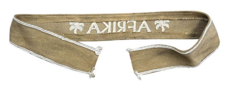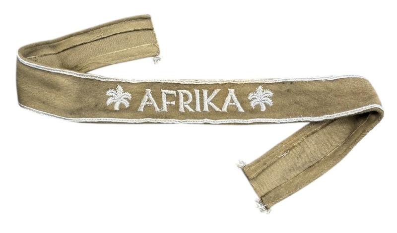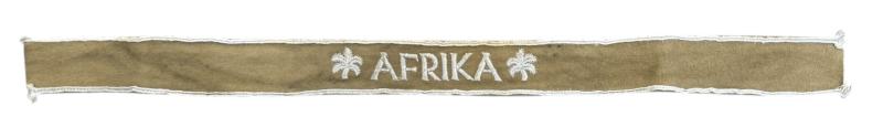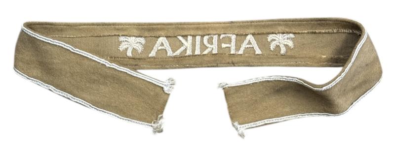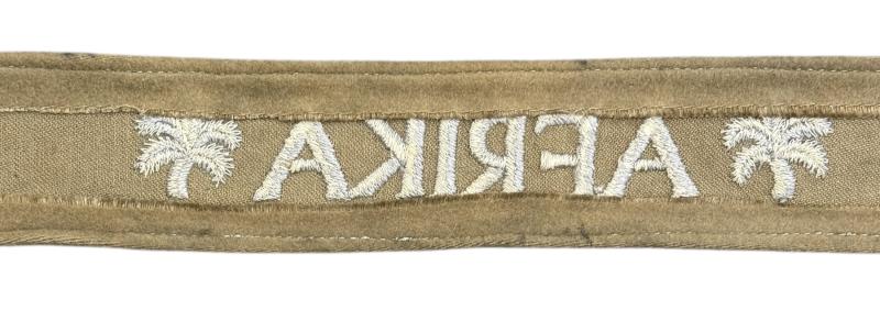 Afrika Korps Cuff Title Mint un-isseud “Afrika Korps” Worn on the tunic by soldiers of the famous “Afrika Korps” Fantastic for a cufftitle collection of on a tropical “Afrika Korps” tunic. Impossible to upgrade!