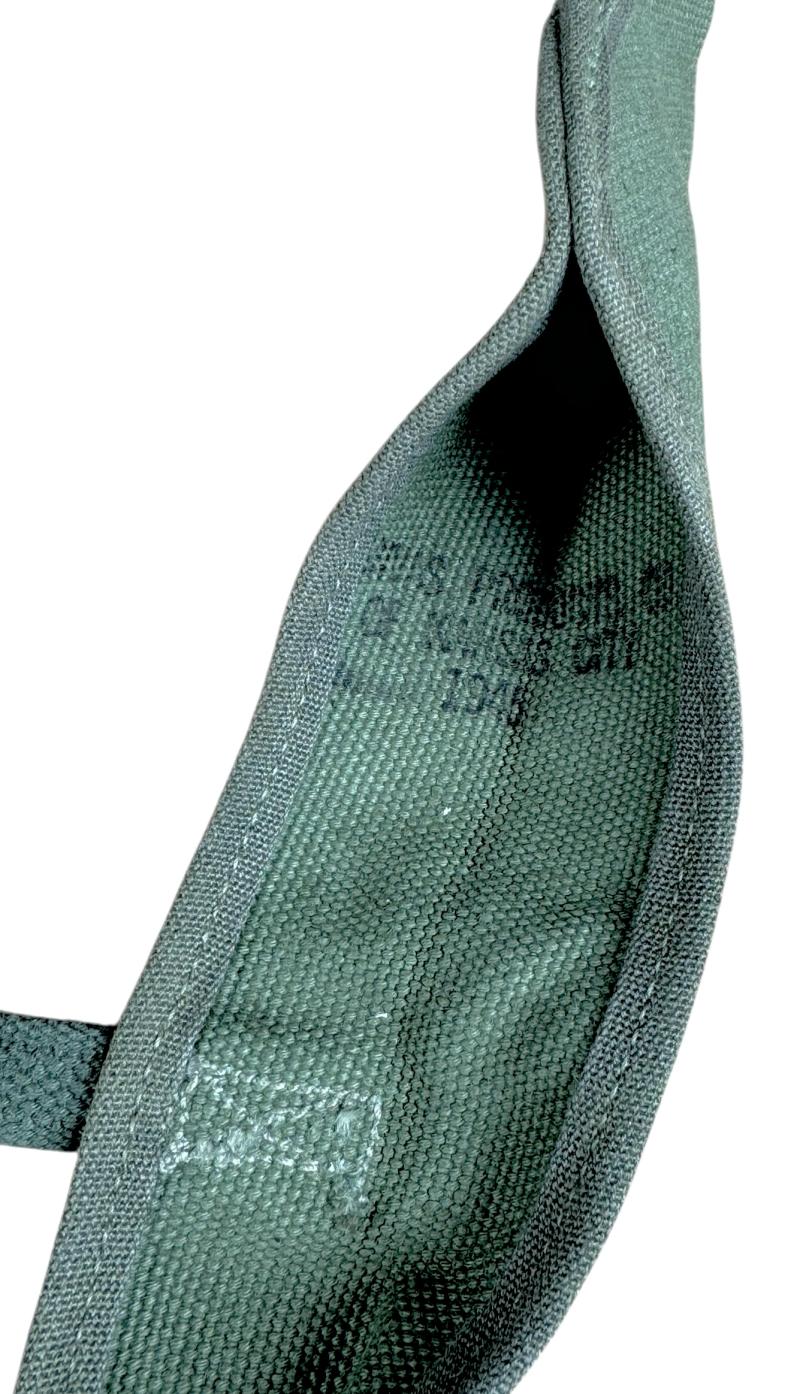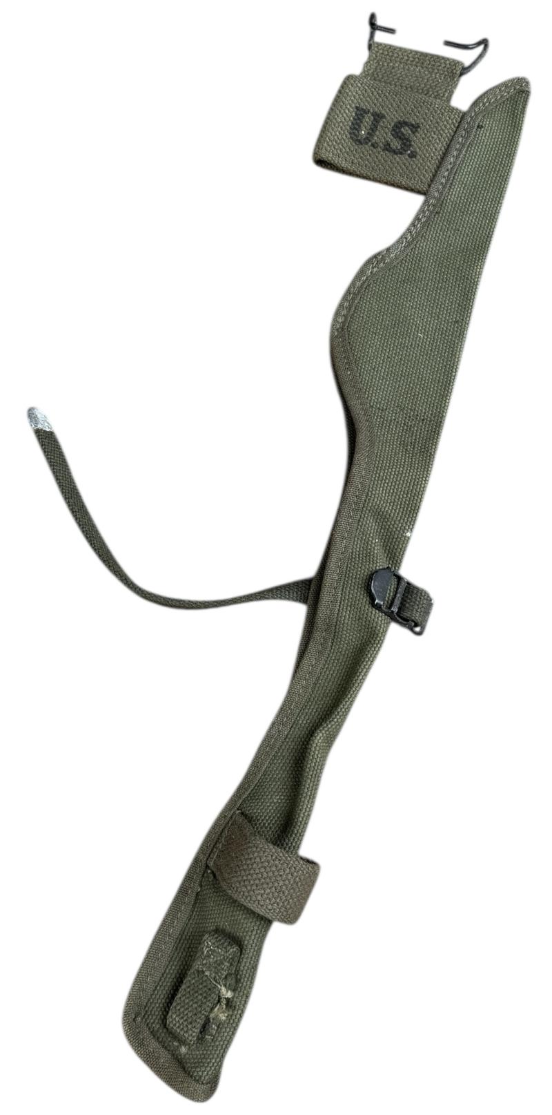 US WW2 Pickaxe Cover Mint late war US WW2 pickaxe cover Maker marked “Canvas products of Kansas City” Dated “1945”. Made to carry the small US WW2 pickaxe.