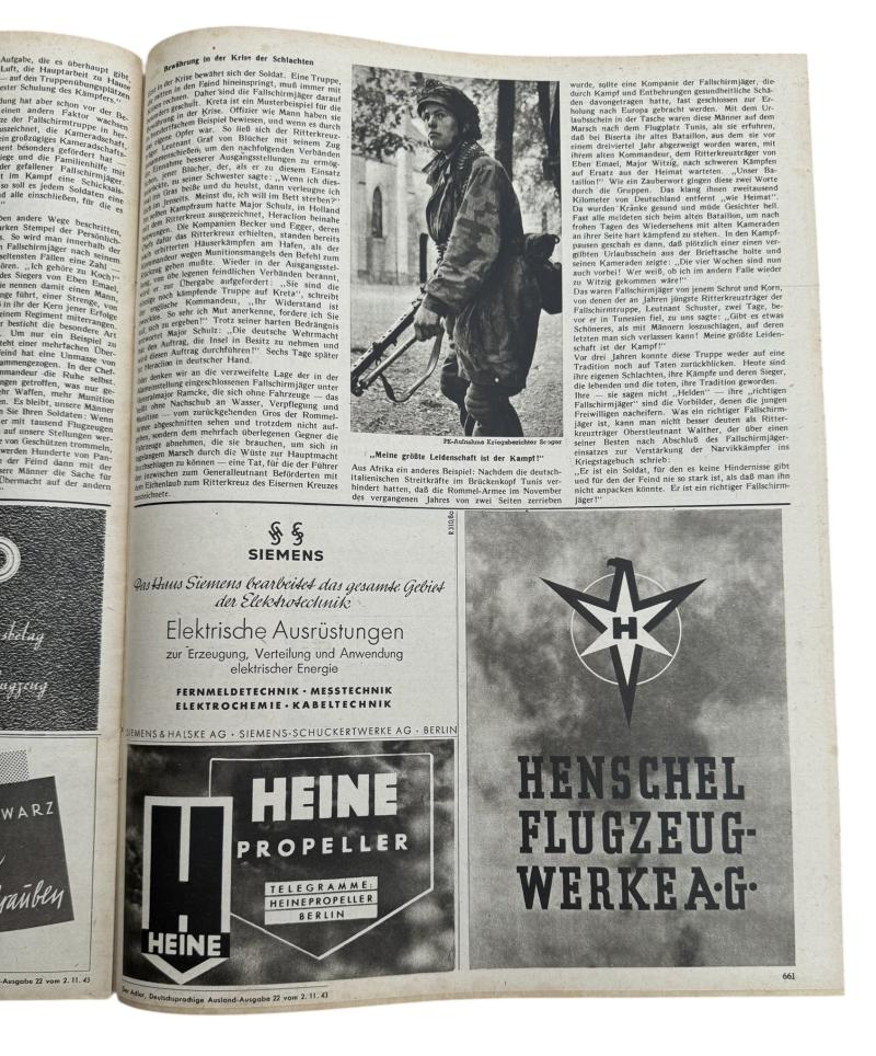 Der Adler Luftwaffe Magazine On the cover “Entscheidende Minuten” Dated “November 2, 1943” With lots a nice photographs inside. In very good condition.