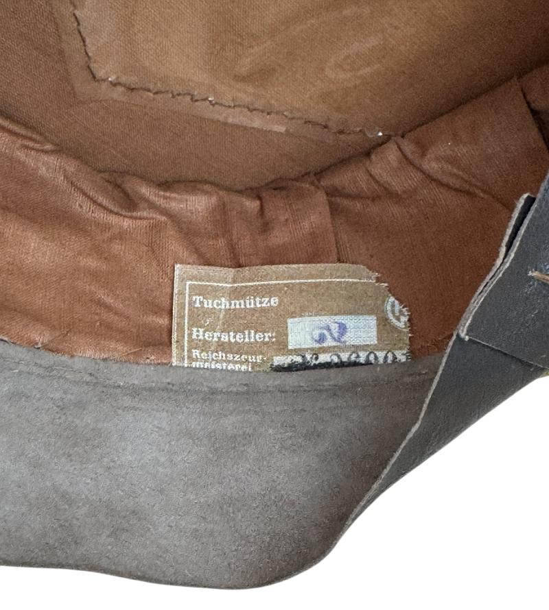 The visor cap has a fantastic “RZM” oilcloth label inside “Tuchmütze”