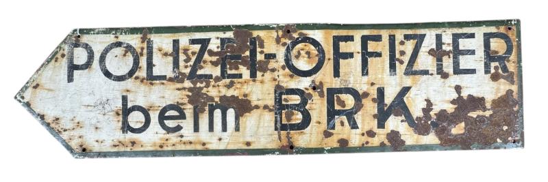 Third Reich metal Road Sign “Polizei-Offizier beim BRK” Nice used metal Third Reich road sign in 85% of its original paint. Great for wall decoration or in a display!