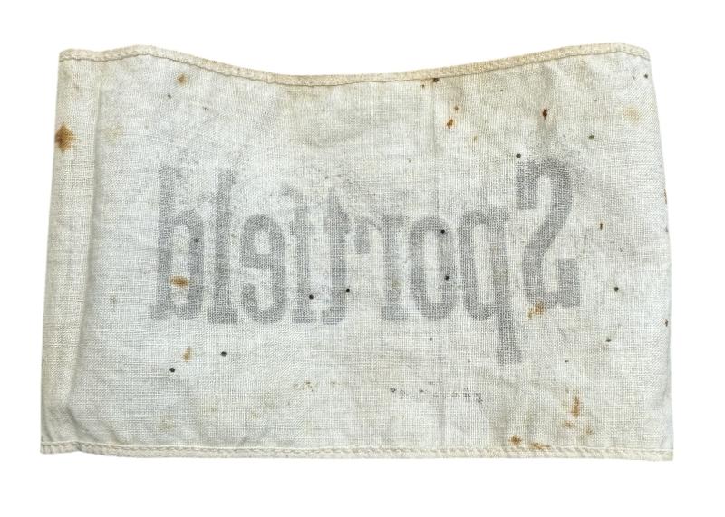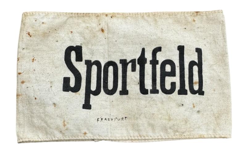 Third Reich Sportfeld Armband Very nice used Third Reich armband “Sportfeld” Nice white cotton armband with black printed text. “Frankfurt” is written by hand on the armband. In usec but in good condition.