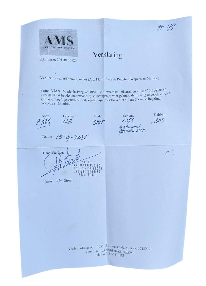 The SMLE has a 10 round box magazine in Cal. 303 British. De-activated according old “Dutch” law