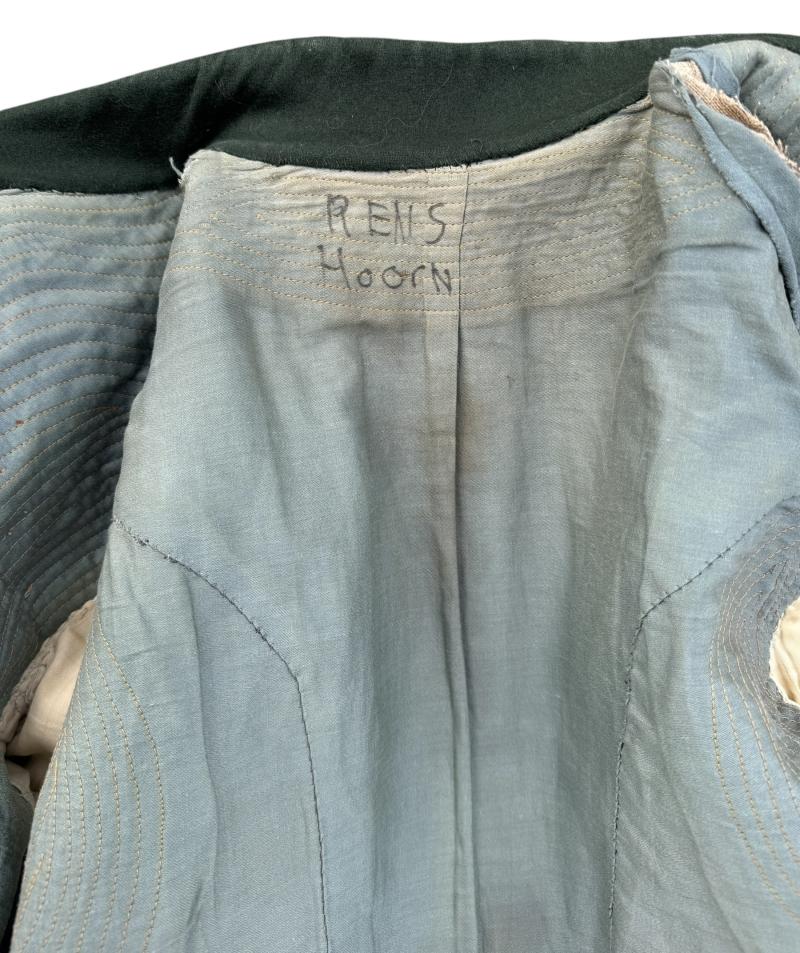 “Feldwebel” made from “Dutch” pre war Military Officers tunic cloth. Named inside “Rens Hoorn” (Dutch name) All insignia originally sewed to the tunic. In good mannequin size. Overall in used but in very good condition. Great on a mannequin or in a display on a torso!