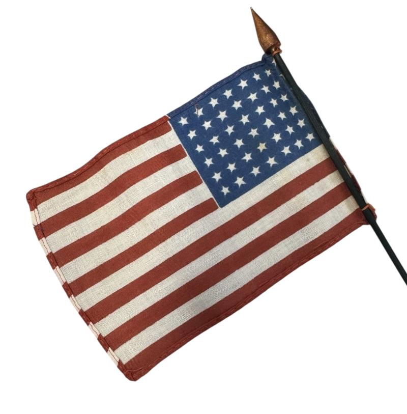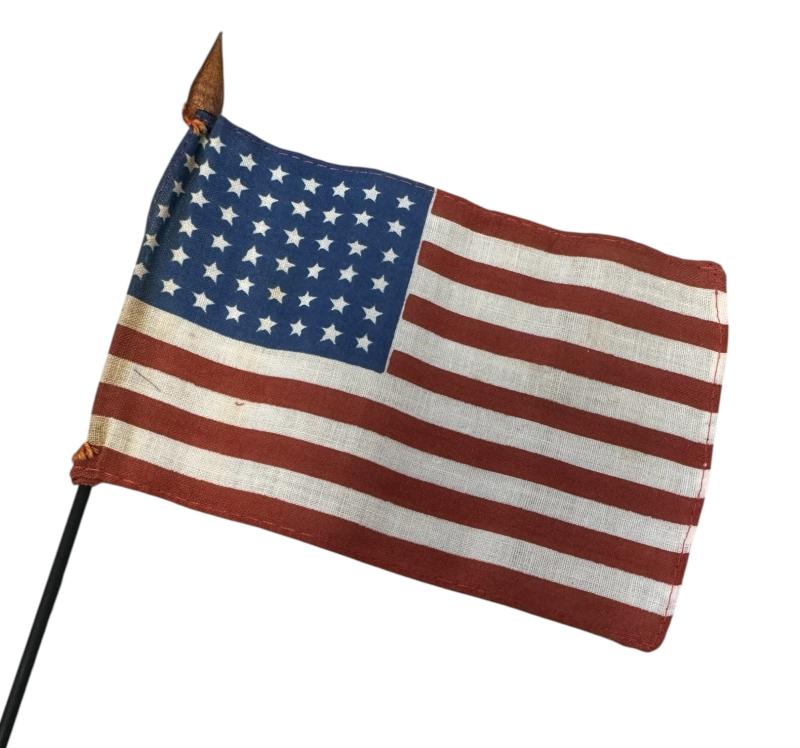 US WW2 48 star Little Flag on pole Very nice made little US WW2 48 star flag on a pole Flag size “13”cm x “8,5”cm In very good condition.