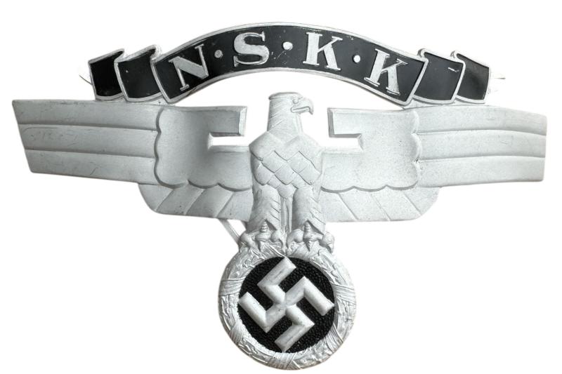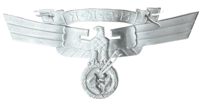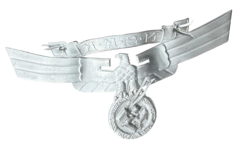 Fantastic and rare to find aluminum NSKK helmet eagle. Great for display or to complete a leather “NSKK Motorsturm” helmet! “RZM M1/8” marked, which is “Ferdinand Wagner, Pforzheim” rare to find!!