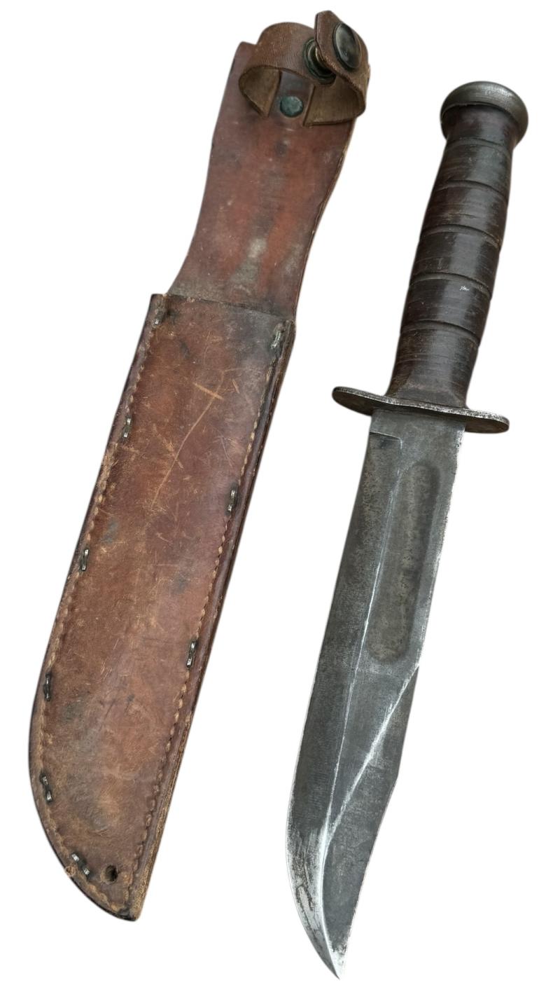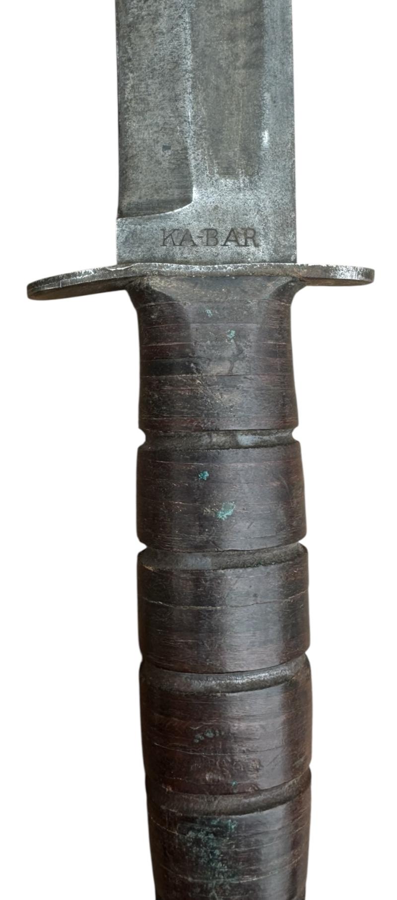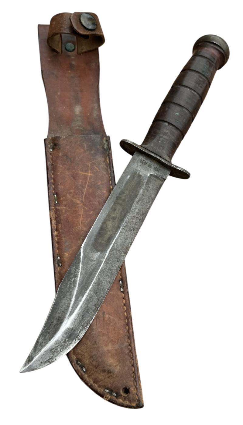 US WW2 Ka-Bar Combat Knife Nice used US WW2 so-called “Ka-Bar” combat knife. In its original leather scabbard. Used by all kinds of combat units whitin the US Army. In used but in very good condition.