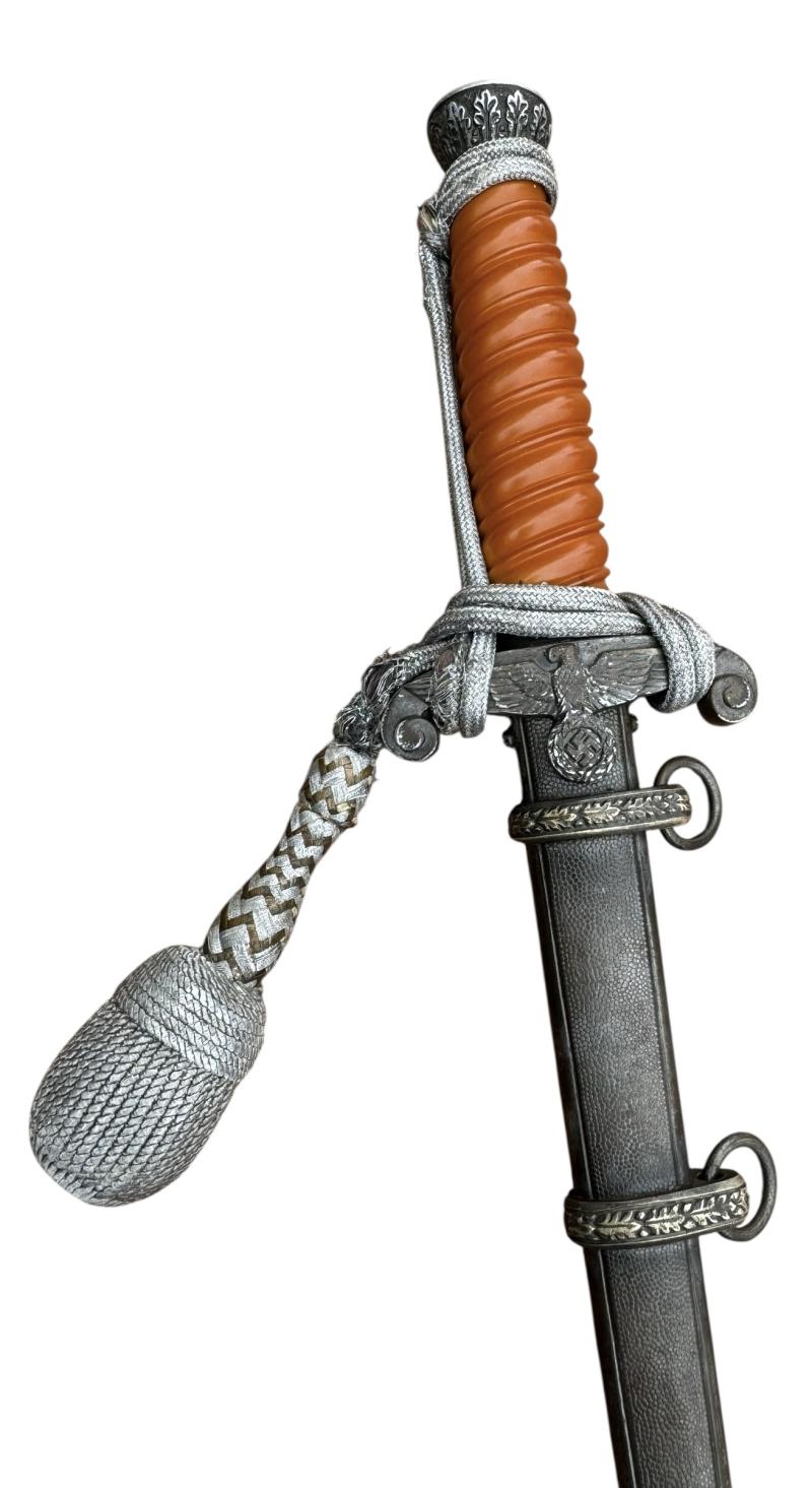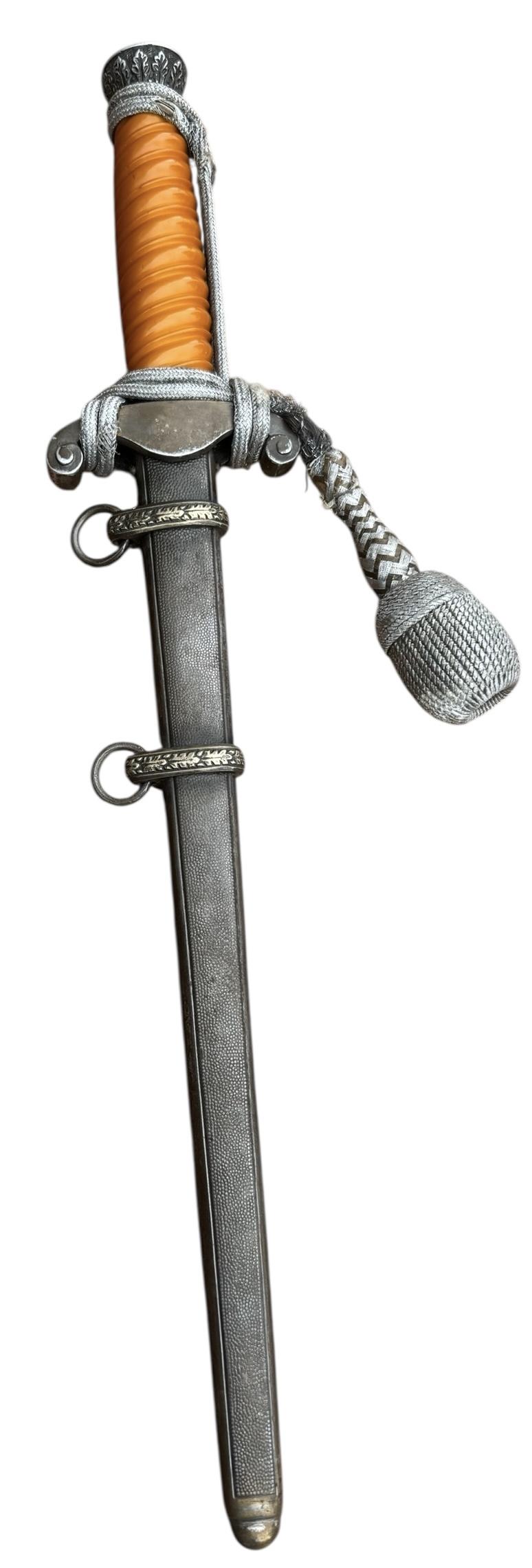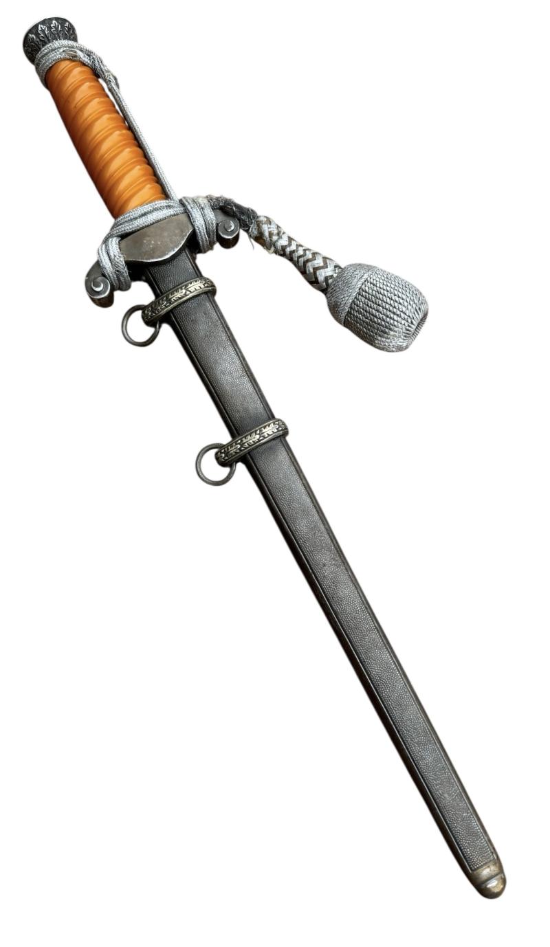 Late war used Wehrmacht Officers dagger with porte pé. Maker marked “Siegfried Waffen, Solingen” In used but very good condition.