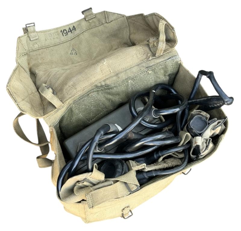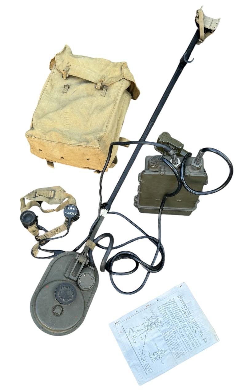 Very nice complete British WW2 “Mine” detector number 4A in its original carrying backback dated “1944” with instructions manual.