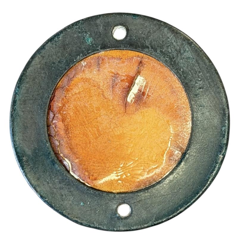 Nicely marked Canadian/US WW2 luminous recognition disk in leather pouch.