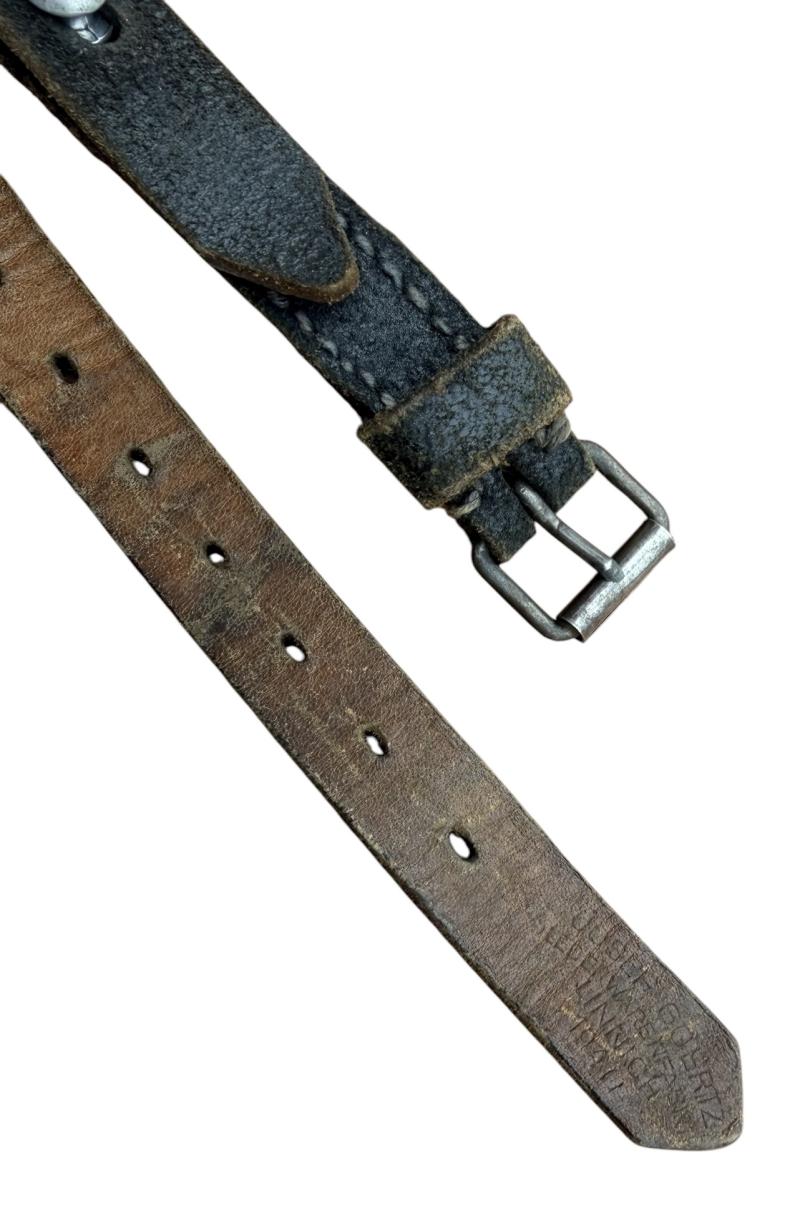 Wehrmacht Utility Strap Nice used leather Wehrmacht utility strap Made by “Josef Goertz” and dated “1941” Used for multiple purposes like “Zeltbahn’s” etc. In used but good condition.