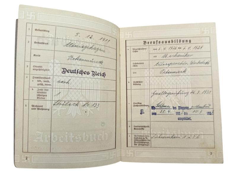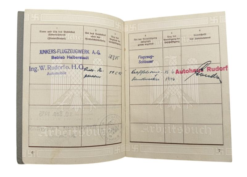 Third Reich Arbeidsbuch “Junker-Flugzeugwerk A.G.”