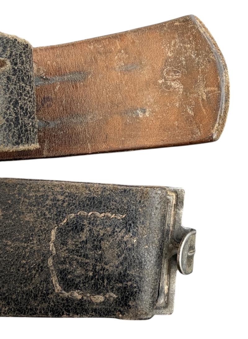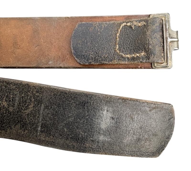 Wehrmacht Combat Belt Nice used leather Wehrmacht combat belt with steel buckle catch in size “90”cm Leather in very good and smooth condition. Great to complete Wehrmacht combat gear!