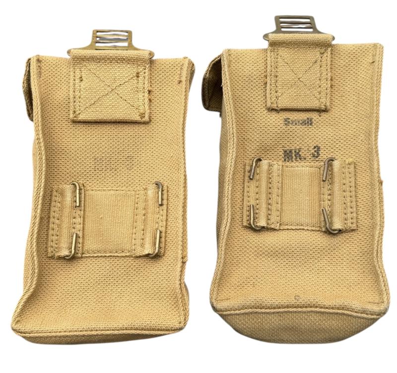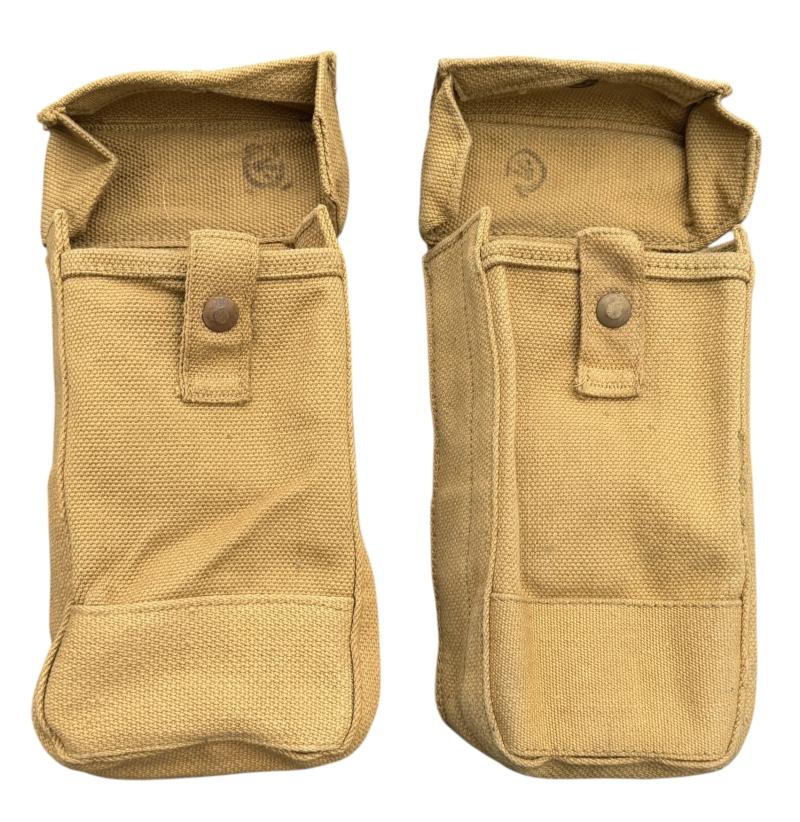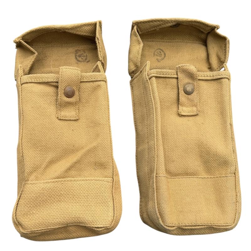 Canadian WW2 Basic Ammo Pouches Near mint pair of Canadian WW2 basic ammo pouches. Both maker marked and “1943” and Canadian “Broad Arrow” stamp. Overal fantastic pair in near mint condition.