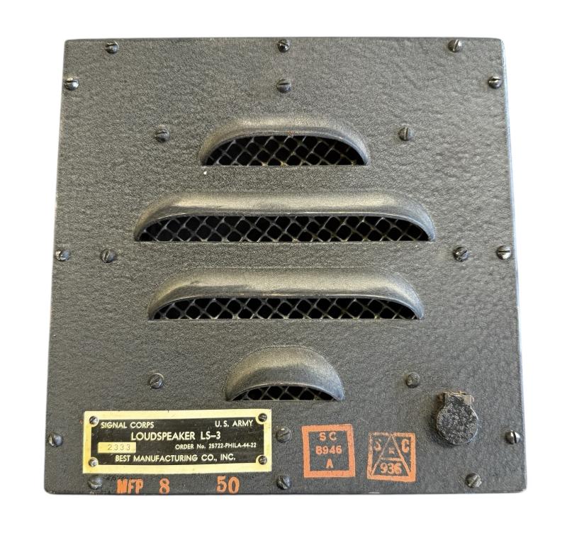 US WW2 Signal Corp Loudspeaker LS-3 Very nice full metal made US WW2 “Signal Corps” loudspeaker. Made by “Best Manufacturing Co. Inc.” In used but very good condition. Great in Signals display!