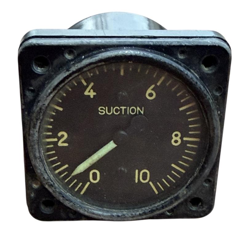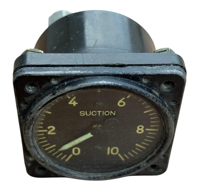 US Airplane Cockpit Instrument Nice used US WW2 Airplane cockpit instrument. “Suction” meter. Minor crack in the bakelite In used but good condition.