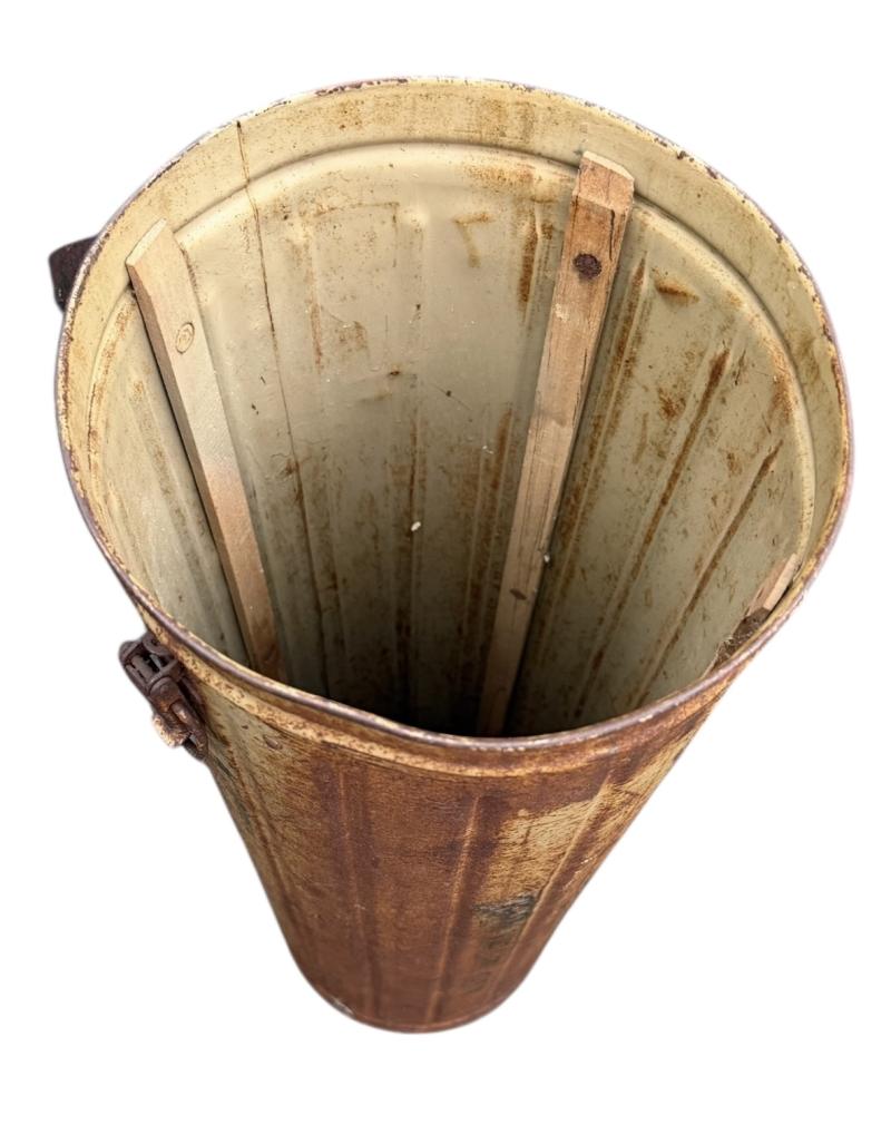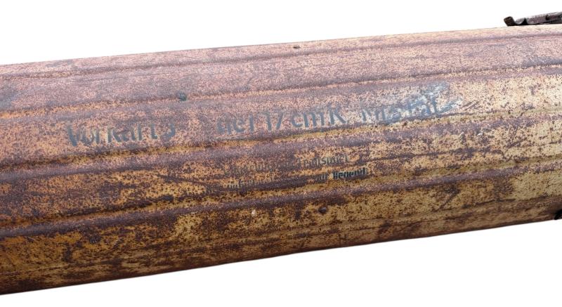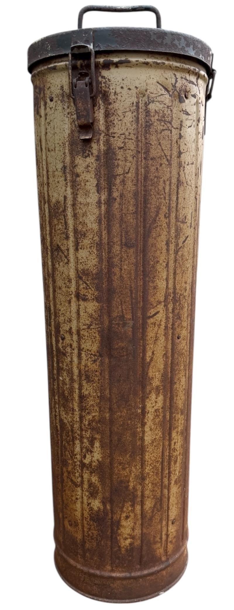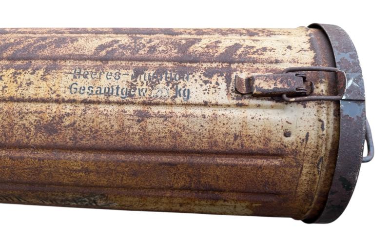 Very nice used and decorative metal “17cm Kart.” container. In 70% of its original camo paint.