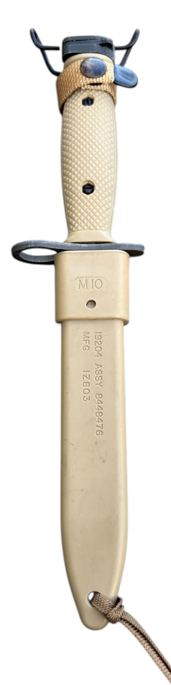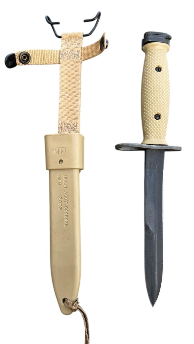 Scabbard marked “M10 19204 ASSY 8448476 MFG IZ803 nice bayonet in very good condition.