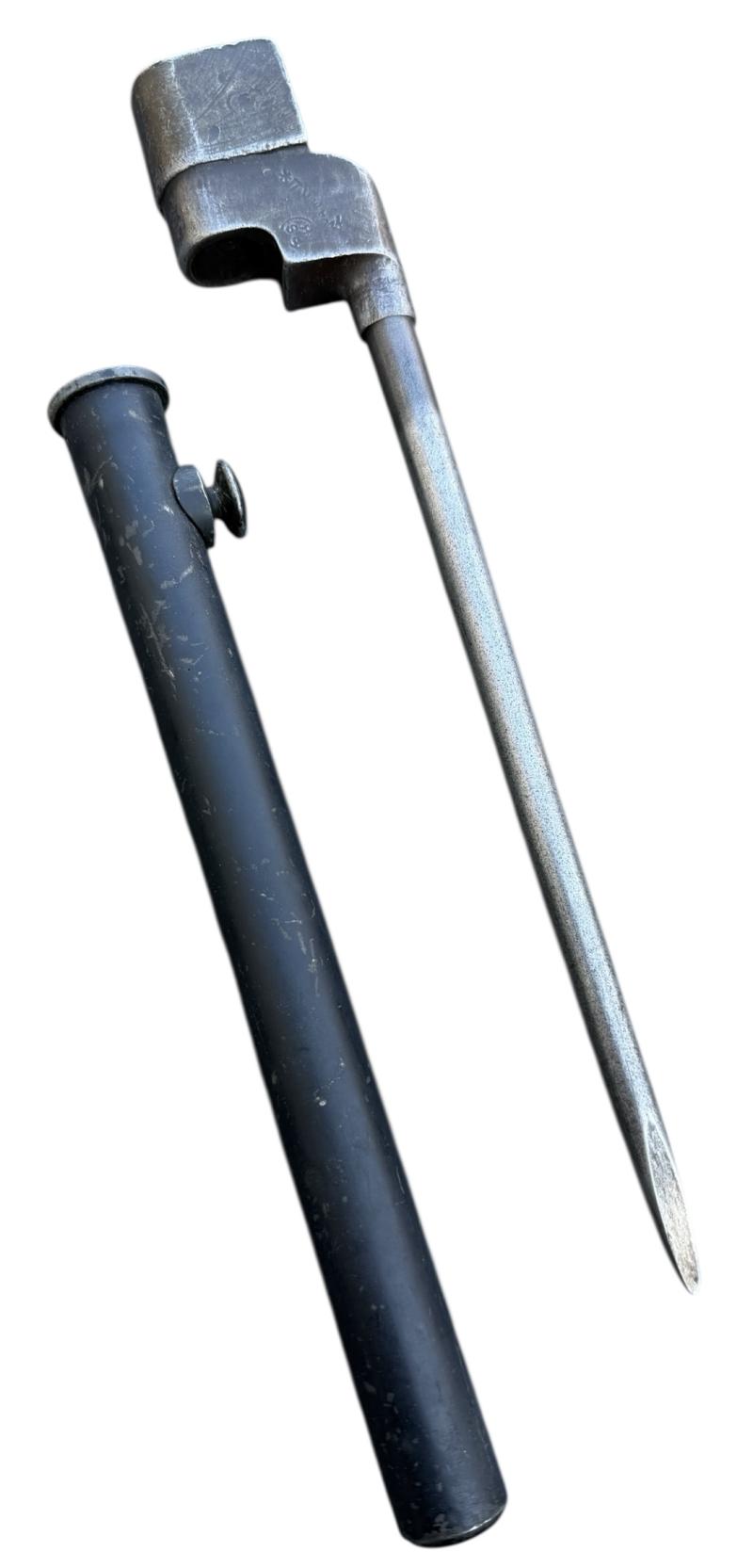 Nice British WW2 dated number 4 MKII so-called “Spike” bayonet. With its original metal scabbard.