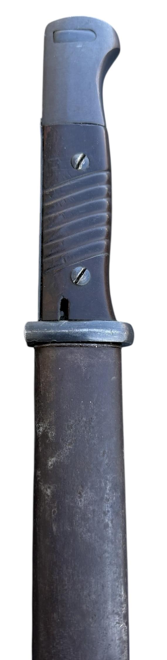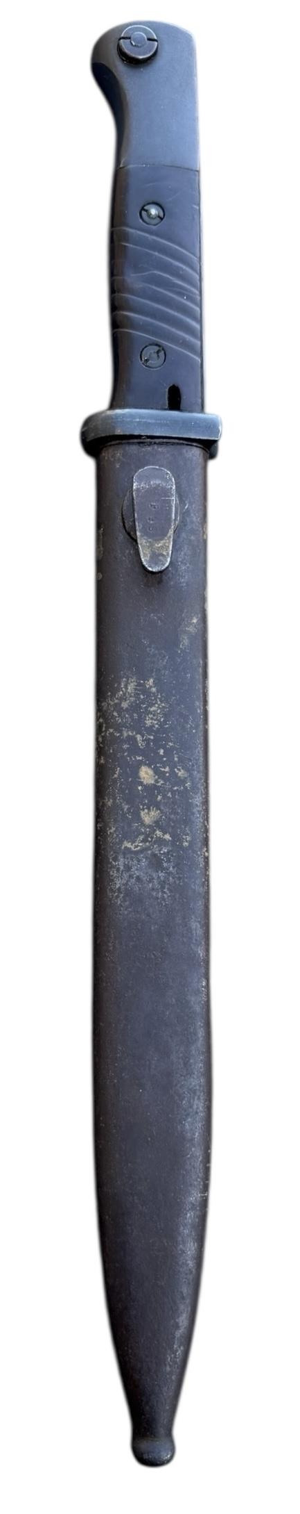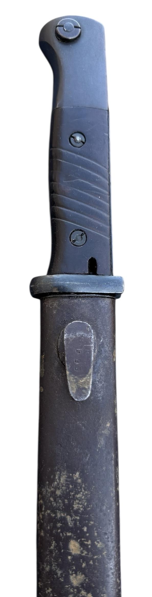K98 Bayonet model 1884/98 Nice used K98 bayonet for the K98 Mauser Karabiner Maker code marked “ASW” and dated “1943” With non matching metal scabbard. Overall a nice used K98 bayonet in used but good condition.