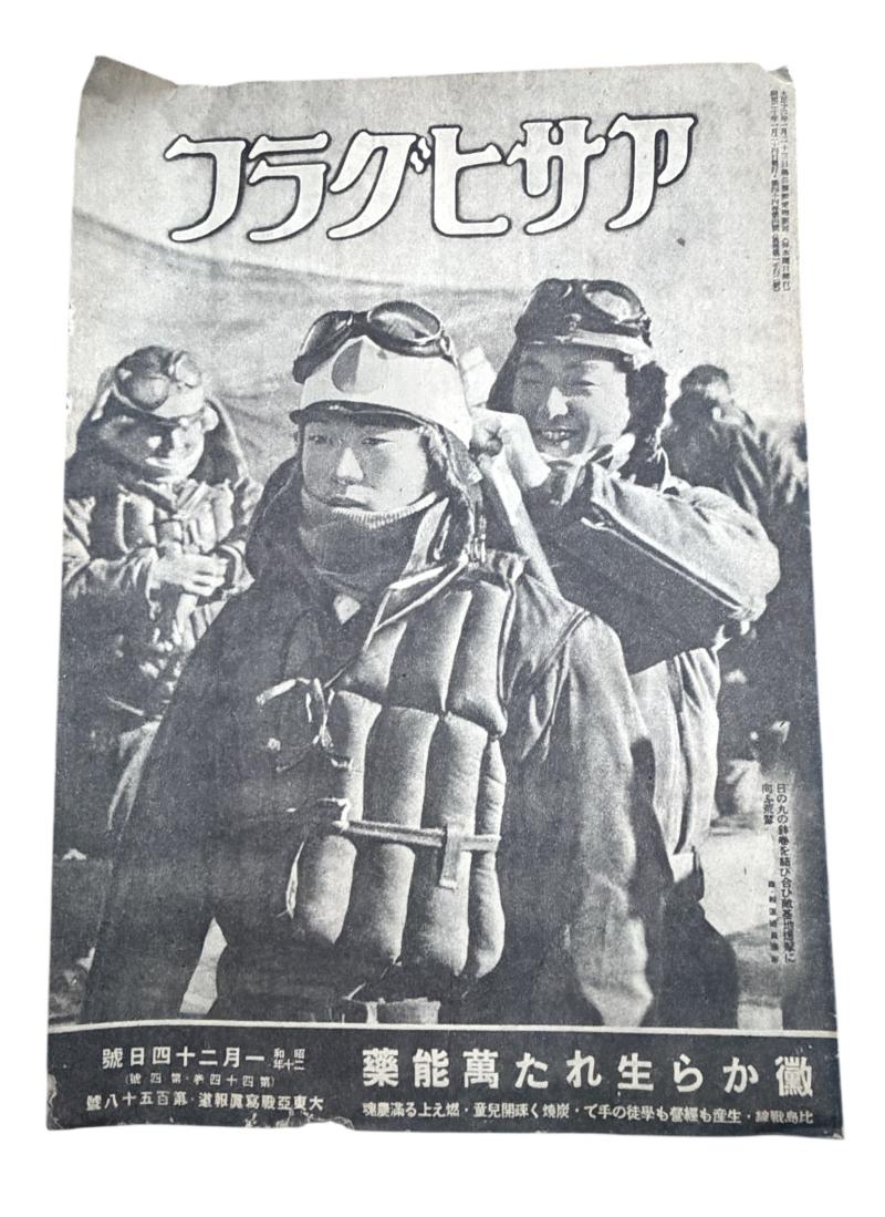 Japanese WW2 Military Magazine Very nice used but very decorative Japanese WW2 magazine. With lots of nice photographs, illustrations and Japanese text. In very good condition.