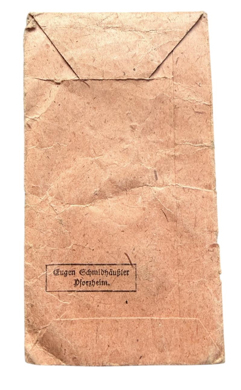 Nice used paper packaging for the “War Merrits Cross with Swords 1939” nicely maker marked “Eugen Schmidhäusser, Pforzheim”