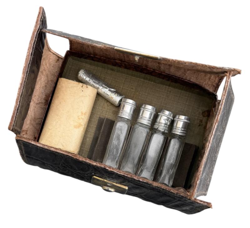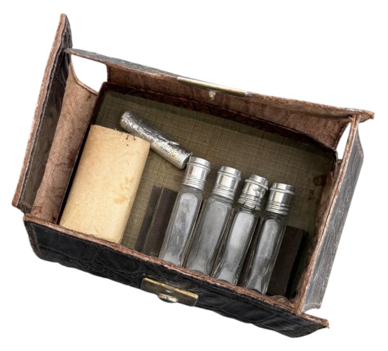 Wehrmacht era Pocket Medical/Medicine Pouch Nice Wehrmacht era pocket medical/medicine pouch. “Taschen-Apotheke” with little medicine bottles and packaging. In used but in good condition.