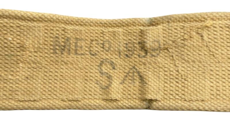 Very nice used British WW2 webbing combat belt in size “S” and maker marked “M.E.Co.”, dated “1939”