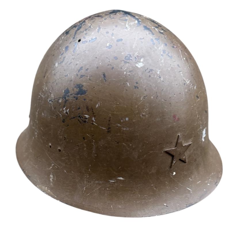 Helmet comes with its original liner and full length helmet straps. The helmet has 98% of its original camo paint. And the Japanese Imperial metal star is present. Overall a very nice Japanese T90 combat helmet in used but in outstanding condition. Great in a Japanese or helmet collection!