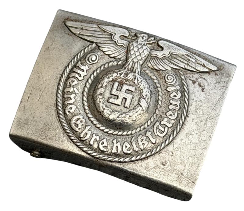 WaffenSS steel Belt Buckle “Rodo” Very nice used WaffenSS steel belt buckle from the desirable maker “Rodo” with great details. Marked “Rodo” in front of the catch. In used but in very good condition.