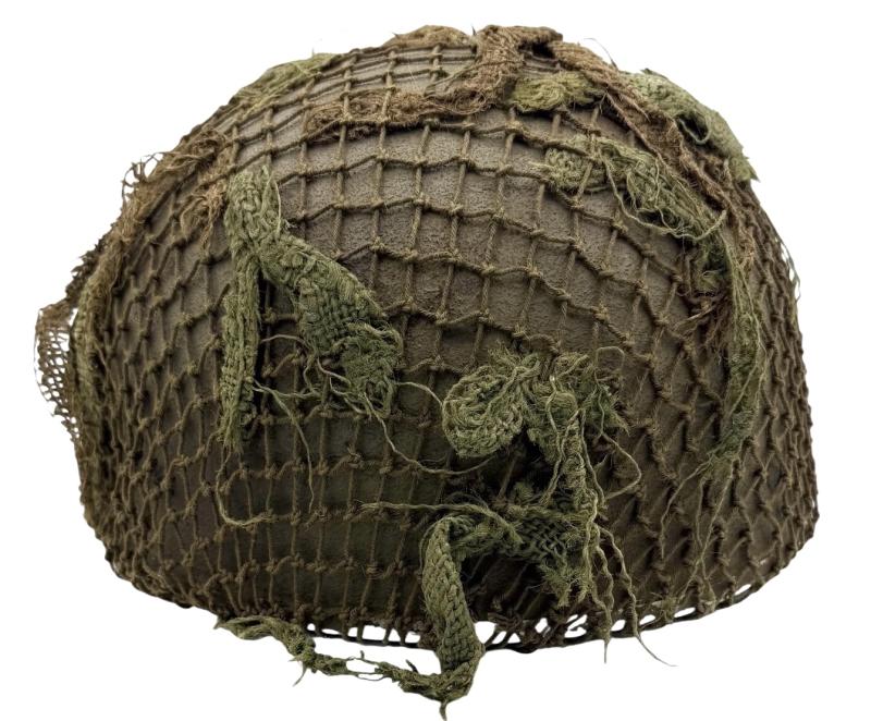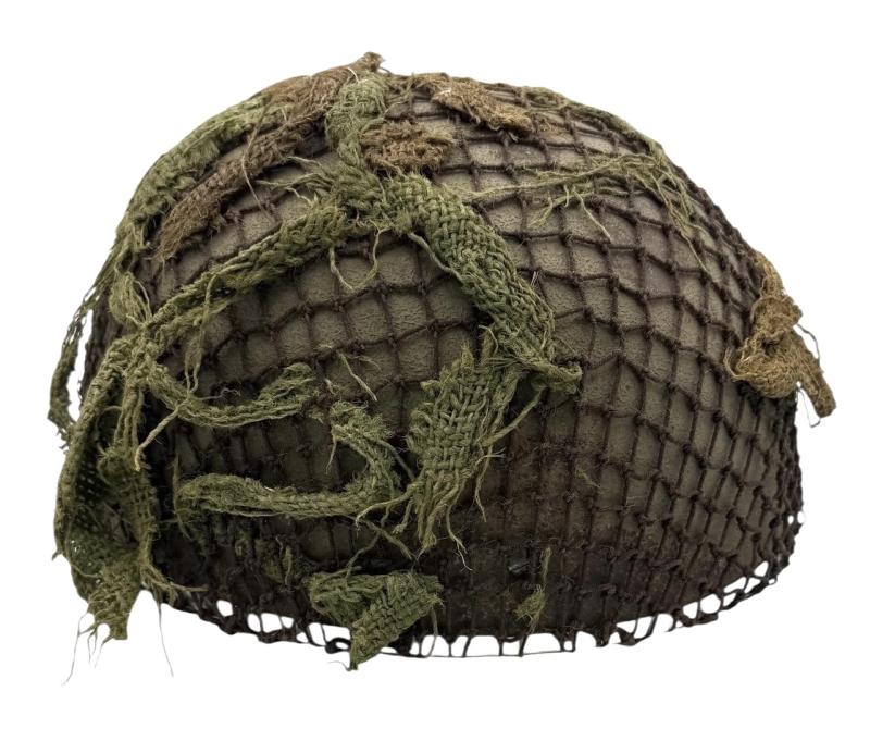 Very nice used and untouched British WW2 2th model Paratrooper helmet with original British WW2 camo net. Maker marked “BMB” (Briggs Motor Bodies) in size “6.7/8” and dated “1943” with its original liner with leather helmet straps. In 98% of its original British WW2 grey rough camo paint. Overall a fantastic untouched original mid war British WW2 Paratrooper helmet in very good condition.