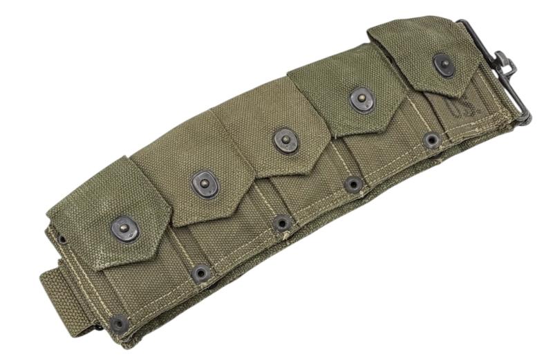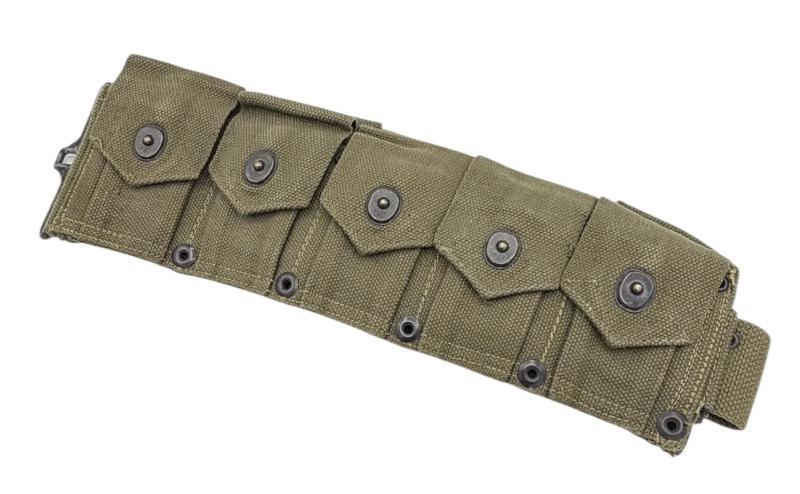 Rifle ammunition belt. The belt would holt 10 clips with 8 rounds in Cal. 30.08 ammunition.