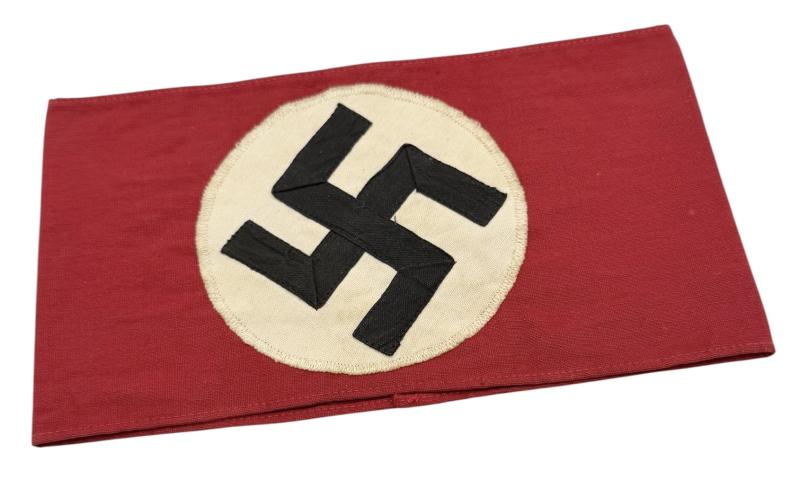 SA/NSDAP Armband Very nice SA/NSDAP armband with cloth stiched swastika. In used but in very good condition. Great to complete a tunic, or as part of an armband collection.