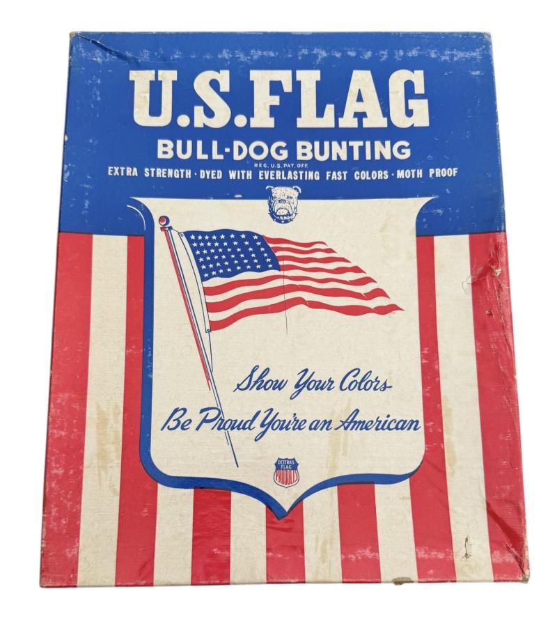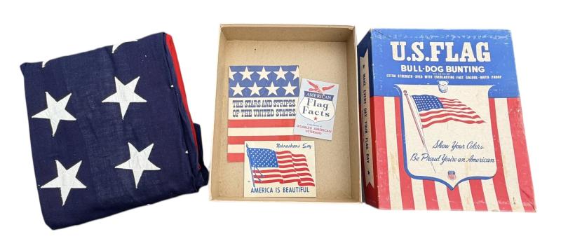 Very nice US WW2 48 star flag in its original clipboard box. Made by “Bull-Dog Bunting”