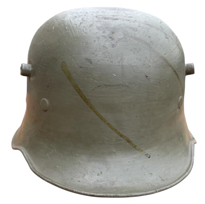 Nice used, named and untouched German WW1 Imperial M17/18 helmet with its original leather liner.