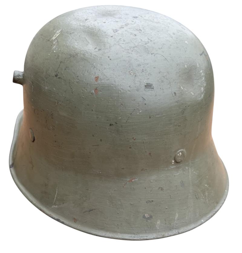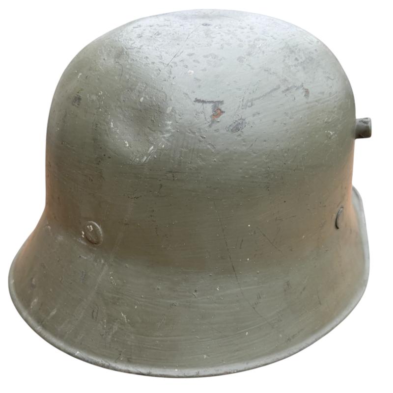Helmet named “Wöhlert” The helmet comes overpainted in original olive/green camo paint.