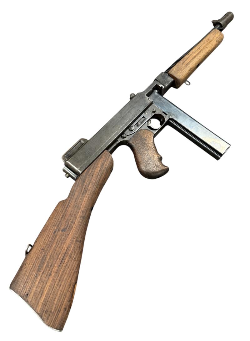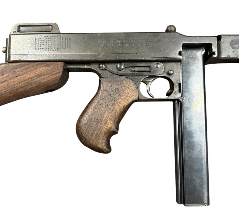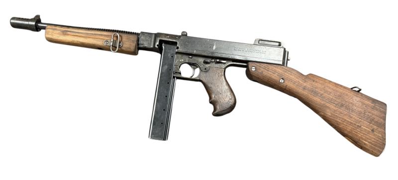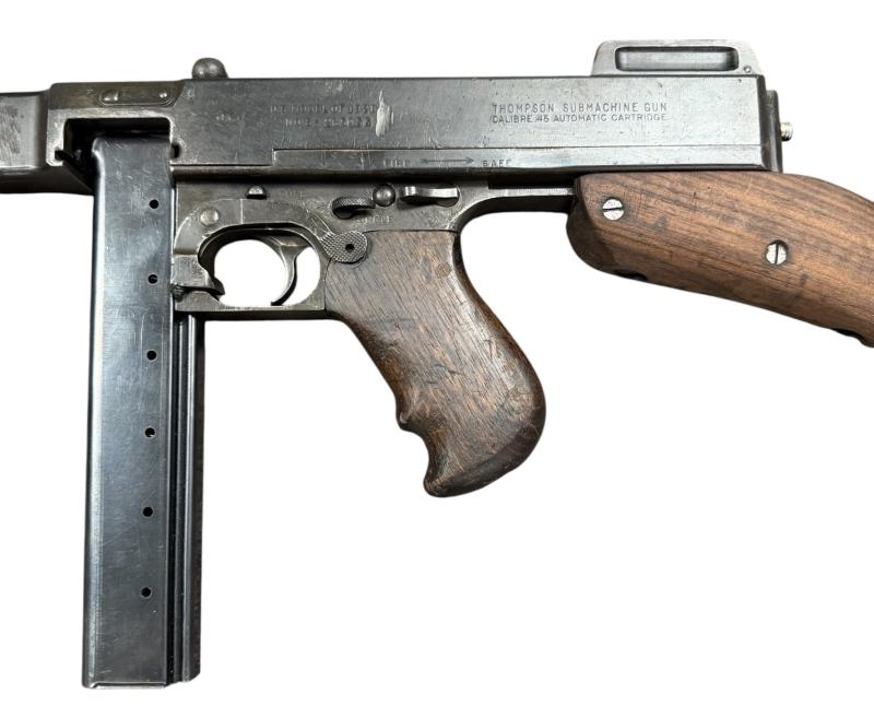 US WW2 28A1 Thompson submachine gun with British WW2 modifications.