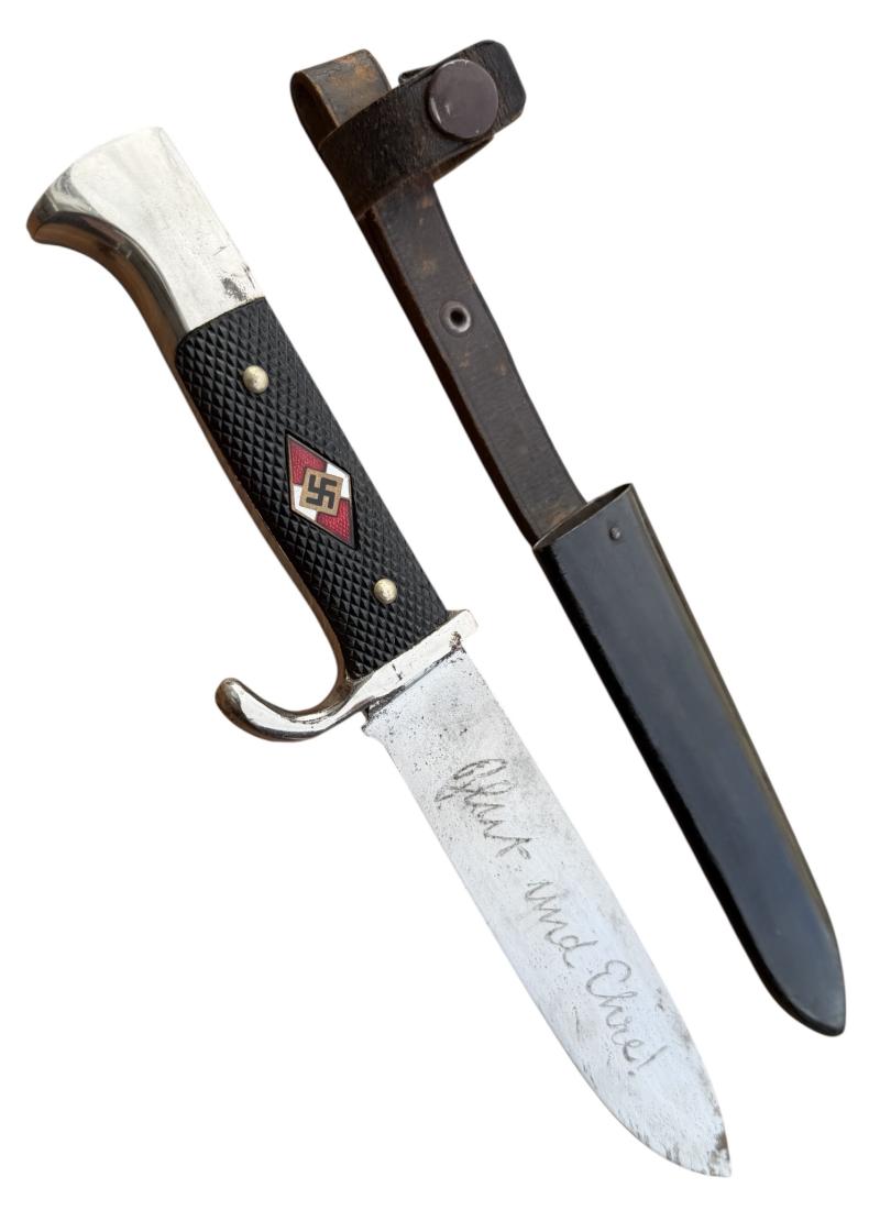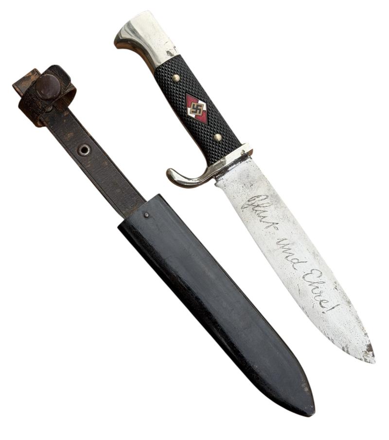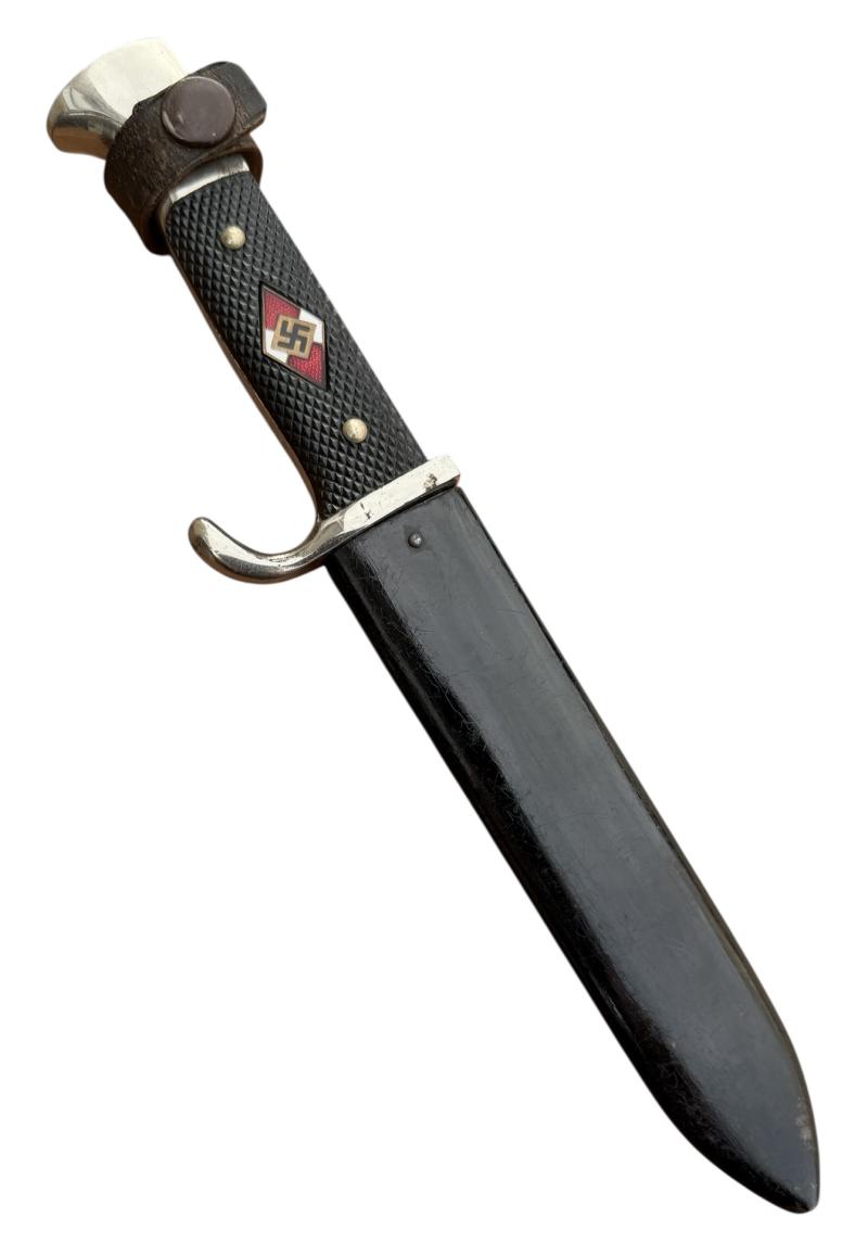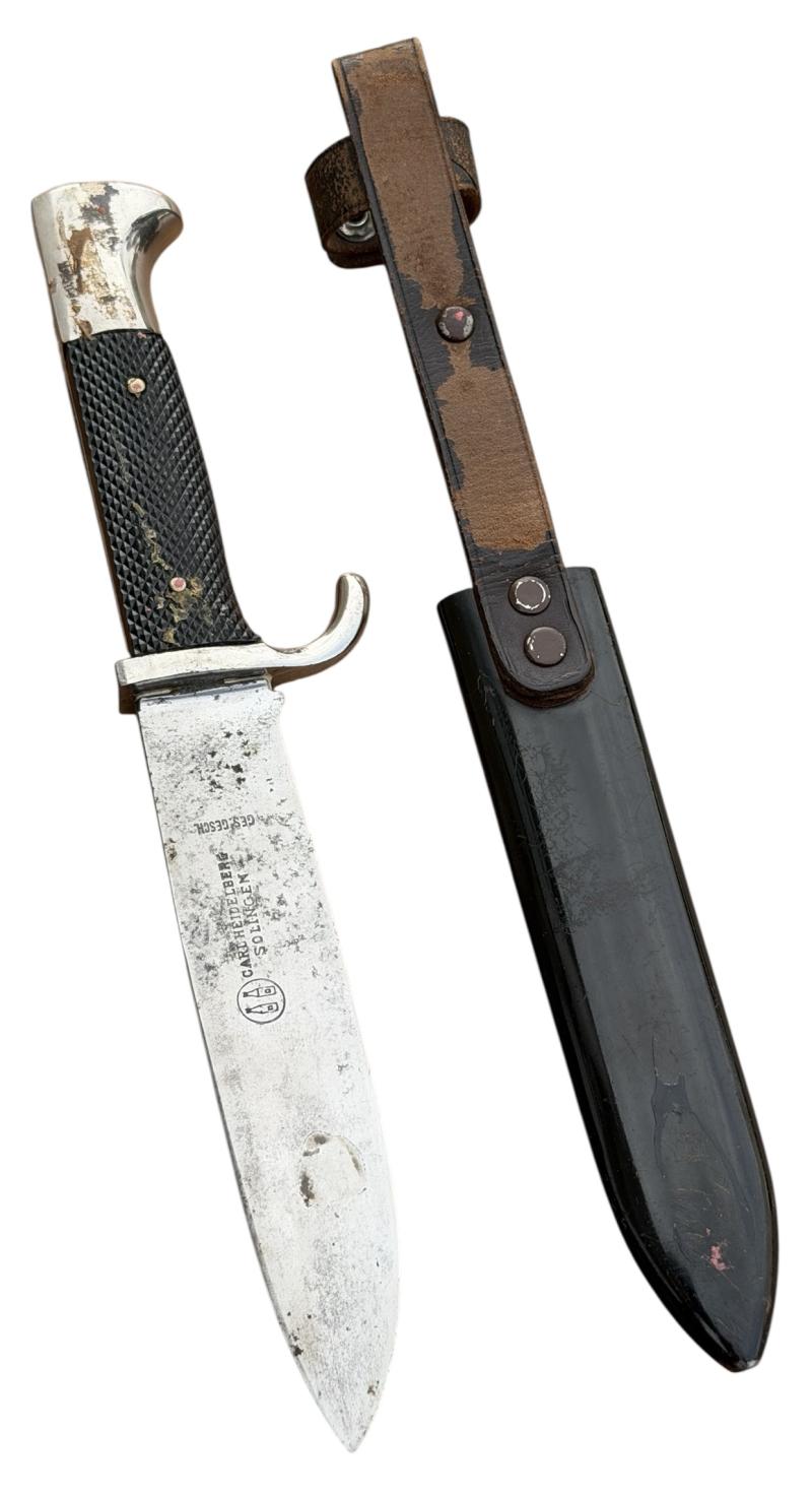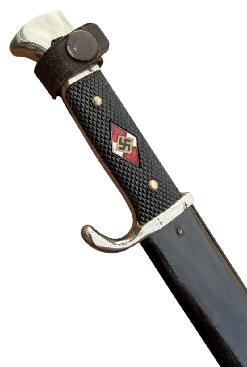 In its original metal scabbard in its original black paint. Used but outstanding early Hitler-Jugend dagger! Great in a HJ or dagger collection!