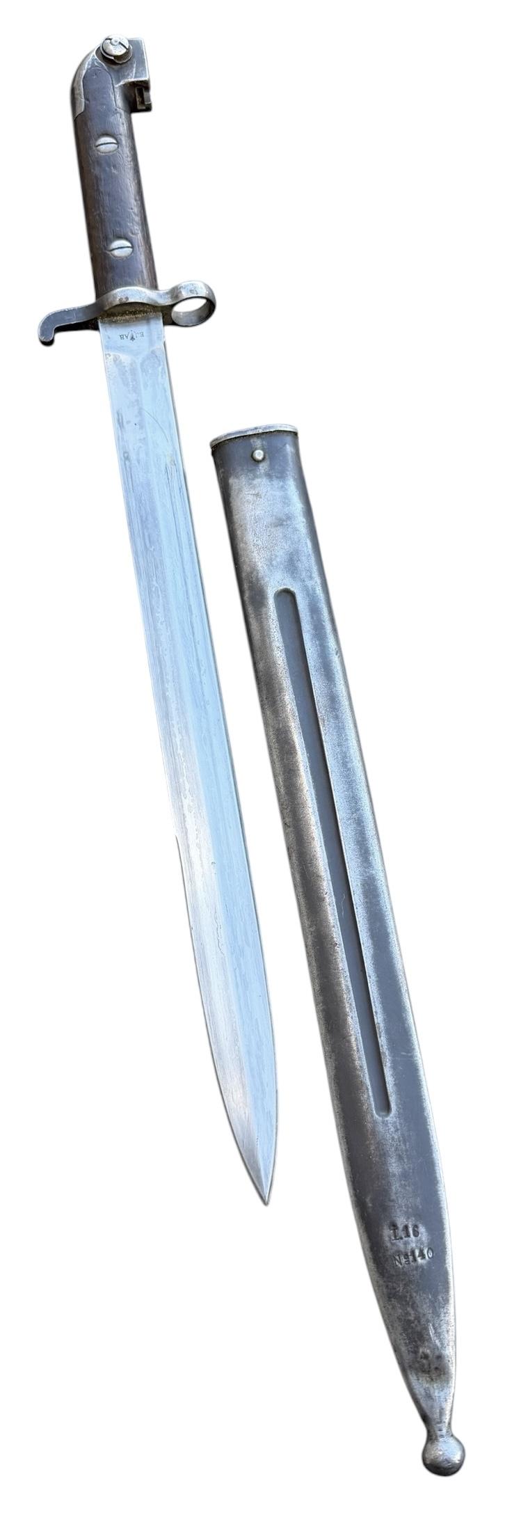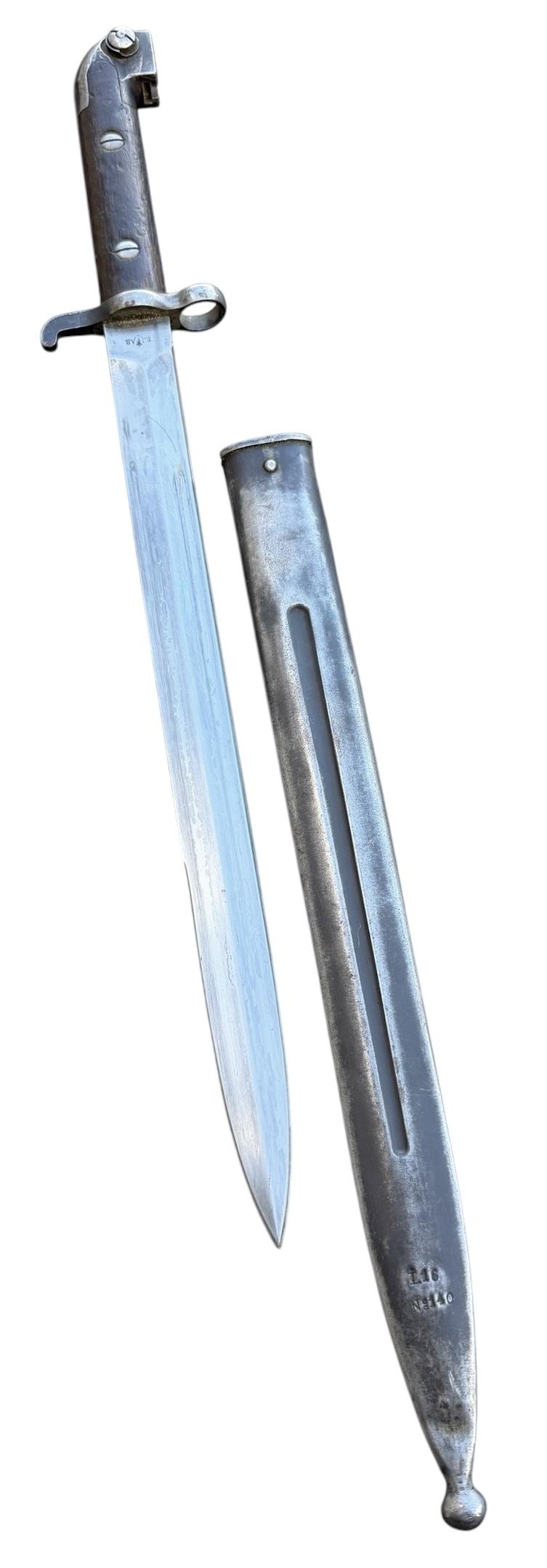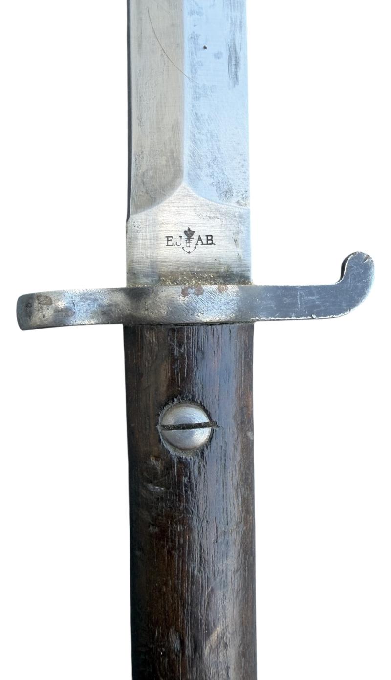 Used but very nice Swedish M1914 bayonet for the Swedish “Mauser”. nice high quality made bayonet with wooden grips and steel scabbard.