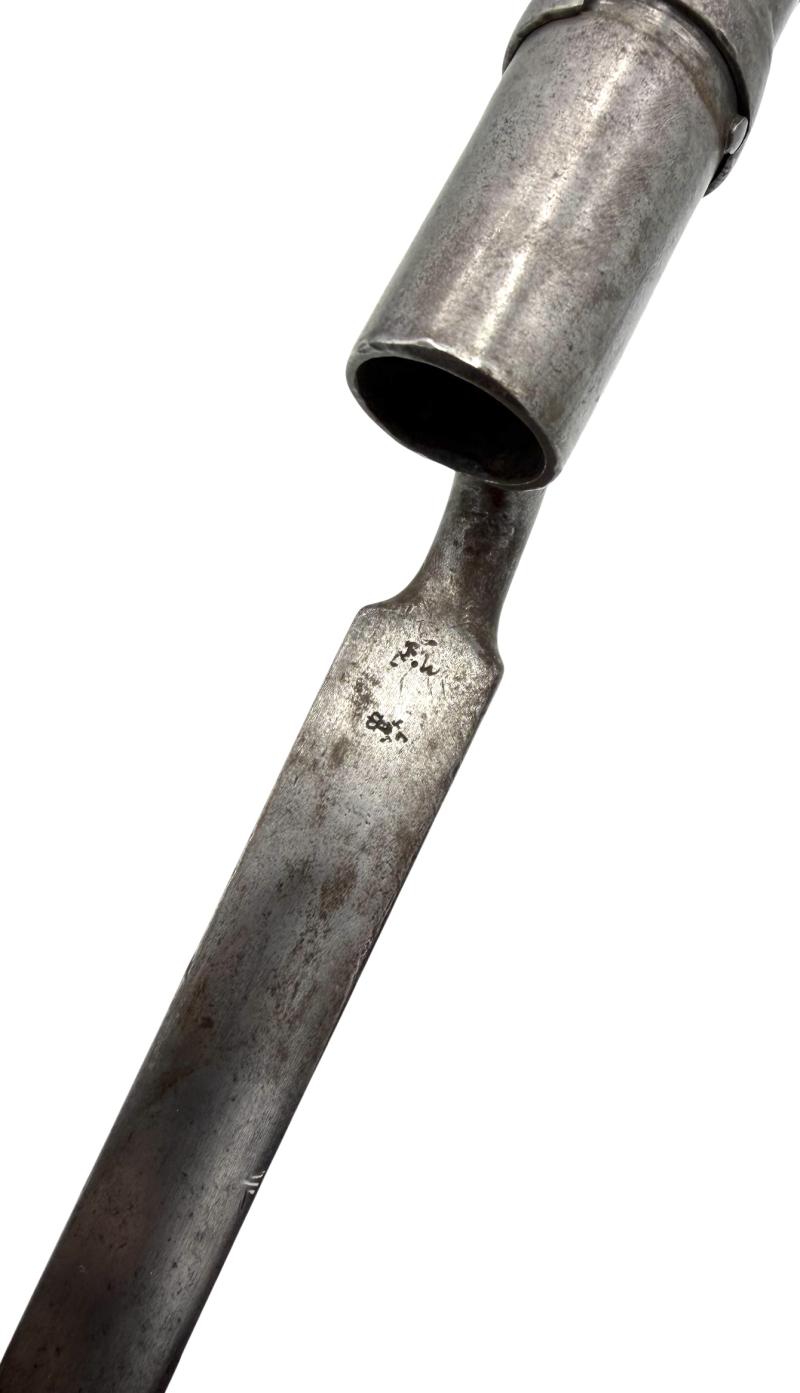 Swedish Socket Bayonet Swedish M-1857 Musket Socket Bayonet Marked with “F.W.” and crown on the blade. In used but very good condition.