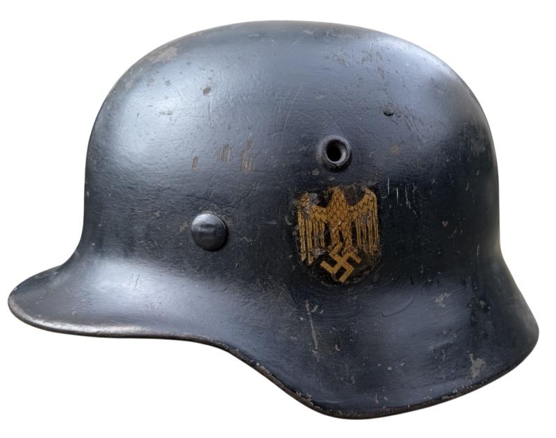 Less common nice used Kriegsmarine Flak (Flugzeug Abwehr Kanonen) M40 SD helmet.