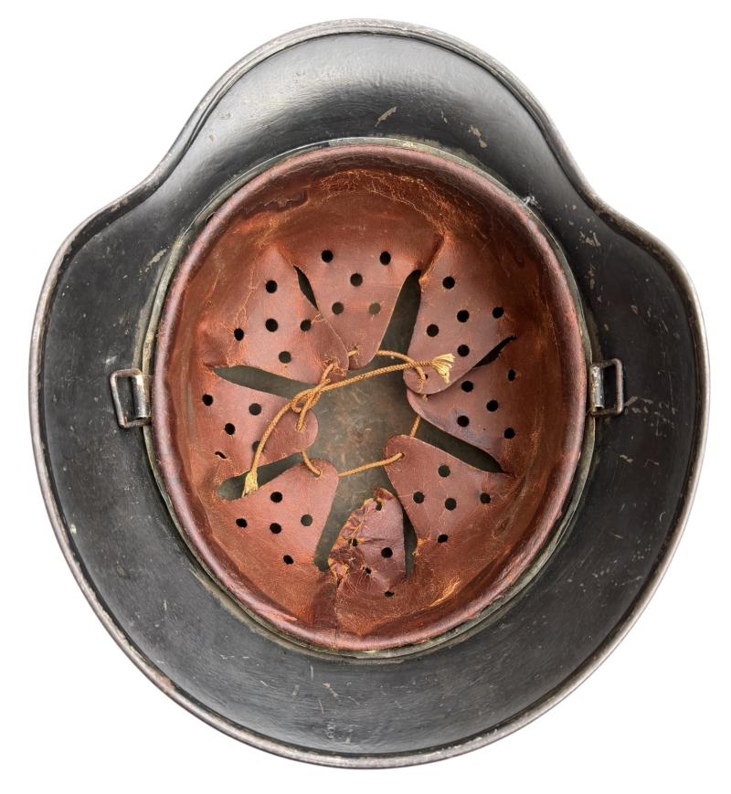 The helmet is originally painted black on top of the factory field/grey camo paint. The deep golden Kriegsmarine decal is in 95% condition.